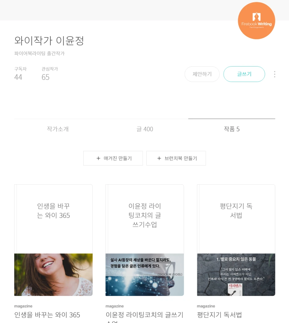 블로그에는 카테고리를 만들어 글을 분류하지만, 브런치에는 매거진과 브런치 북이 있습니다. 매거진은 30개까지 만들 수 있고요. 그 안에 들어가는 글은 아직 제한이 없어 보입니다.