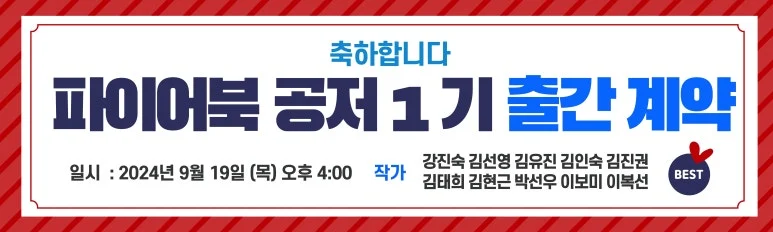 2024년 7월에 출항한 파이어북 공저1기 프로젝트, 1차 퇴고, 2차퇴고, 짝궁검토를 거쳐 출간계약까지 이어졌습니다.