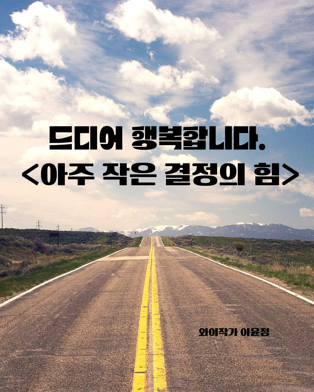 드디어 행복합니다. 아주 작은 결정을 시작했거든요. 시작한 후에는, 내가 선택한 결정이 정답이 될 수 있도록 노력합니다. 당신을 믿으세요. 잘 하고 있어요. 당신만의 성공을 쌓아가면 됩니다.
