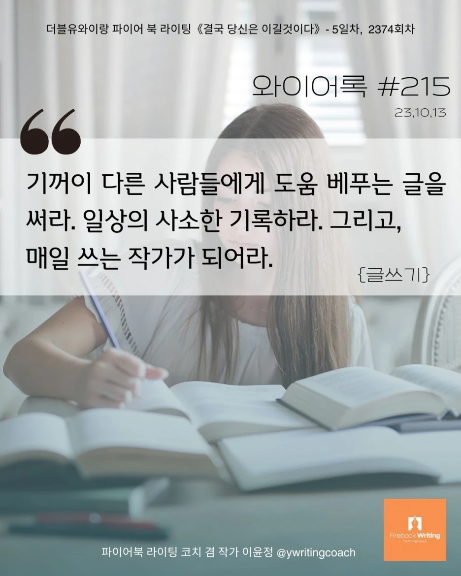 기꺼이 다른 사람들에게 도움 베푸는 글을 써라. 일상을 사소하게 기록하라. 그리고, 매일 쓰는 작가가 되어라.