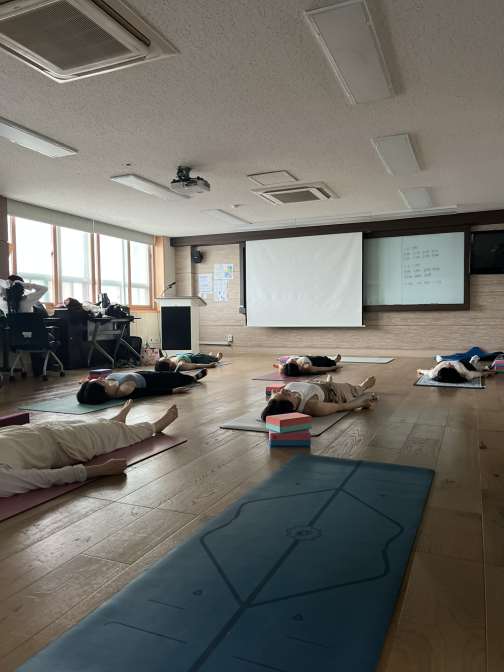 중간고사에 대한 안내가 있었다. 주제를 잡고 시퀀스를 짜서 수업 시연을 하는 것. 재미있게도 다들 각자의 상황과 관심 분야에 특화된 주제를 잡았다. 결혼을 앞둔 소희님은 ‘신혼여행지에서의 커플 힐링요가’, 초등학교 교사인 주하님은 ‘키 성장을 위한 키즈요가’를 주제로 잡았다.