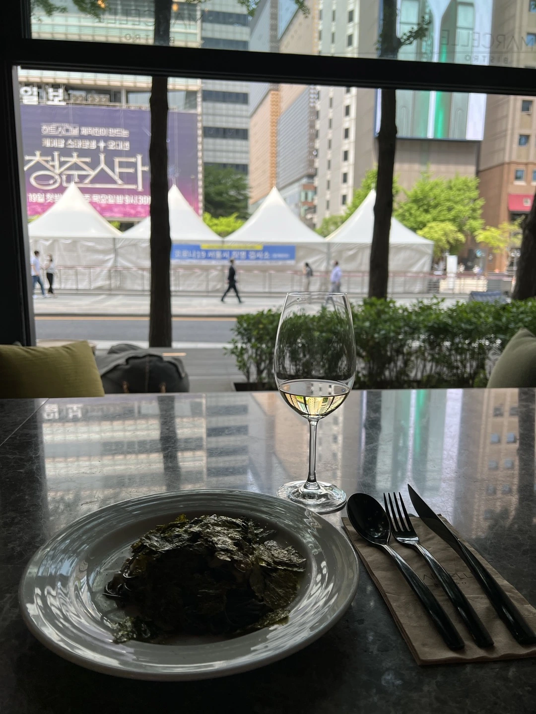 2022년 4월 28일. 4개월을 야근으로 지새게 했던 프로젝트가 끝났다. 힐링 타임이 필요했다. 오후 반차를 내고 요가 수련을 하고, 회사 근처 레스토랑에서 우아한 ‘혼점’을 했다. 이 날의 쇼비뇽 블랑은 최고였다. 곱창김성게알파스타(이렇게나 이름이 직관적이라니?)와도 너무 잘 어울렸다.
