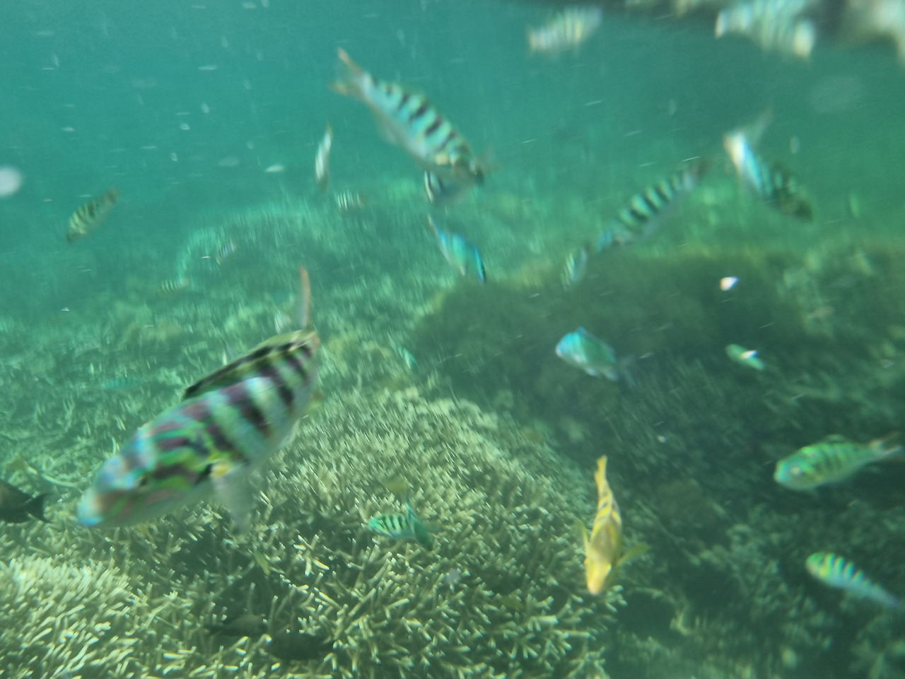 두번째, 세번째 포인트는 더 아름다웠다. 수심이 꽤 깊었는데 물이 어찌나 맑은지 투명하게 바닥까지 보였다. 각양각색의 물고기들, 크기나 생김새도 제각각이다. 어째서 열대어는 이토록 예쁜 색을 지녔는지 찾아보니, 이성에게 잘 보이기 위한 ‘번식 전략’이자 천적을 혼란스럽게 하기 위한 ‘생존 전략’이라고 한다. 번식과 생존. 생명체의 존재 이유와도 같은 그것을 따라 진화한 결과가 인간의 눈에는 그저 아름답게 보인다. 인간 세상의 악다구니도 한차원 높은 곳에서 조망하면 아름답게 보이려나. 지금의 여행이 때로는 고생스럽더라도 훗날 돌이켜본다면 무척 아름답게 기억될 거라는 건 분명하다.