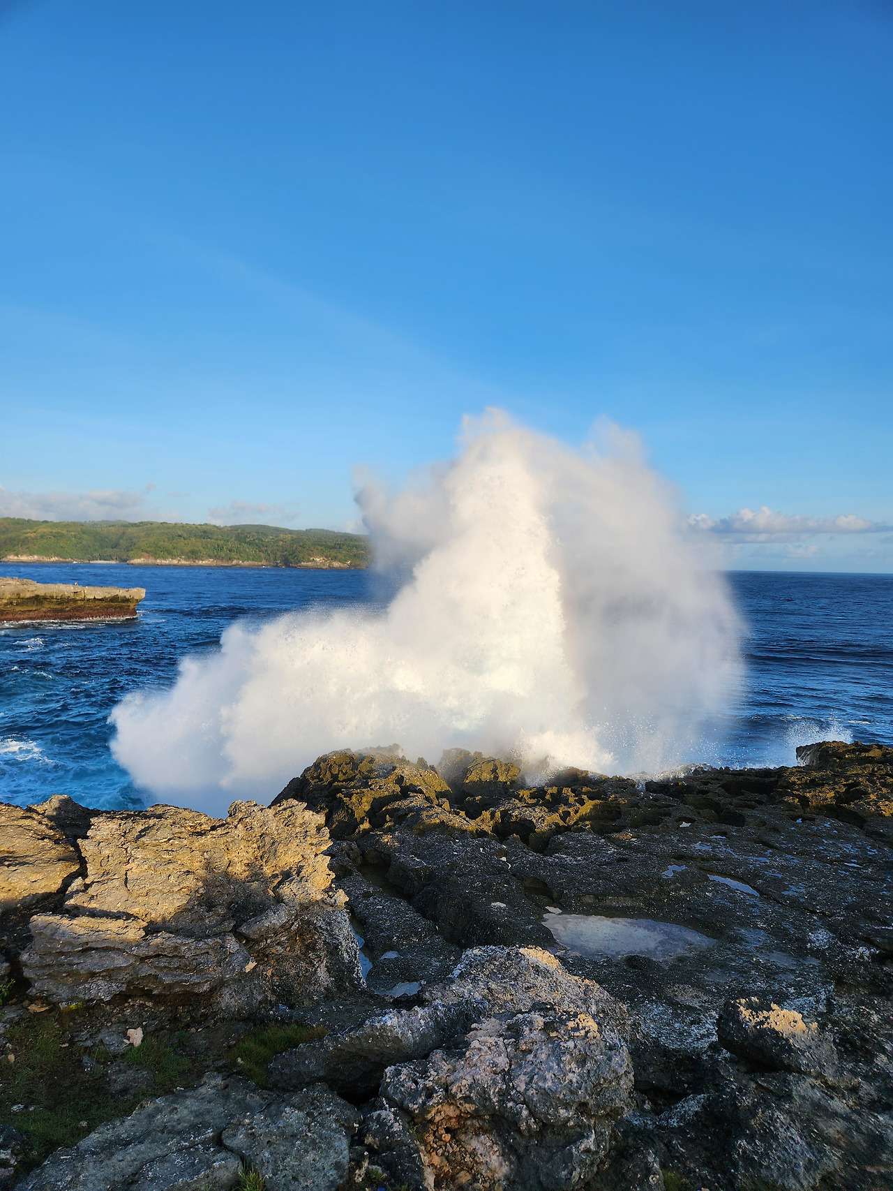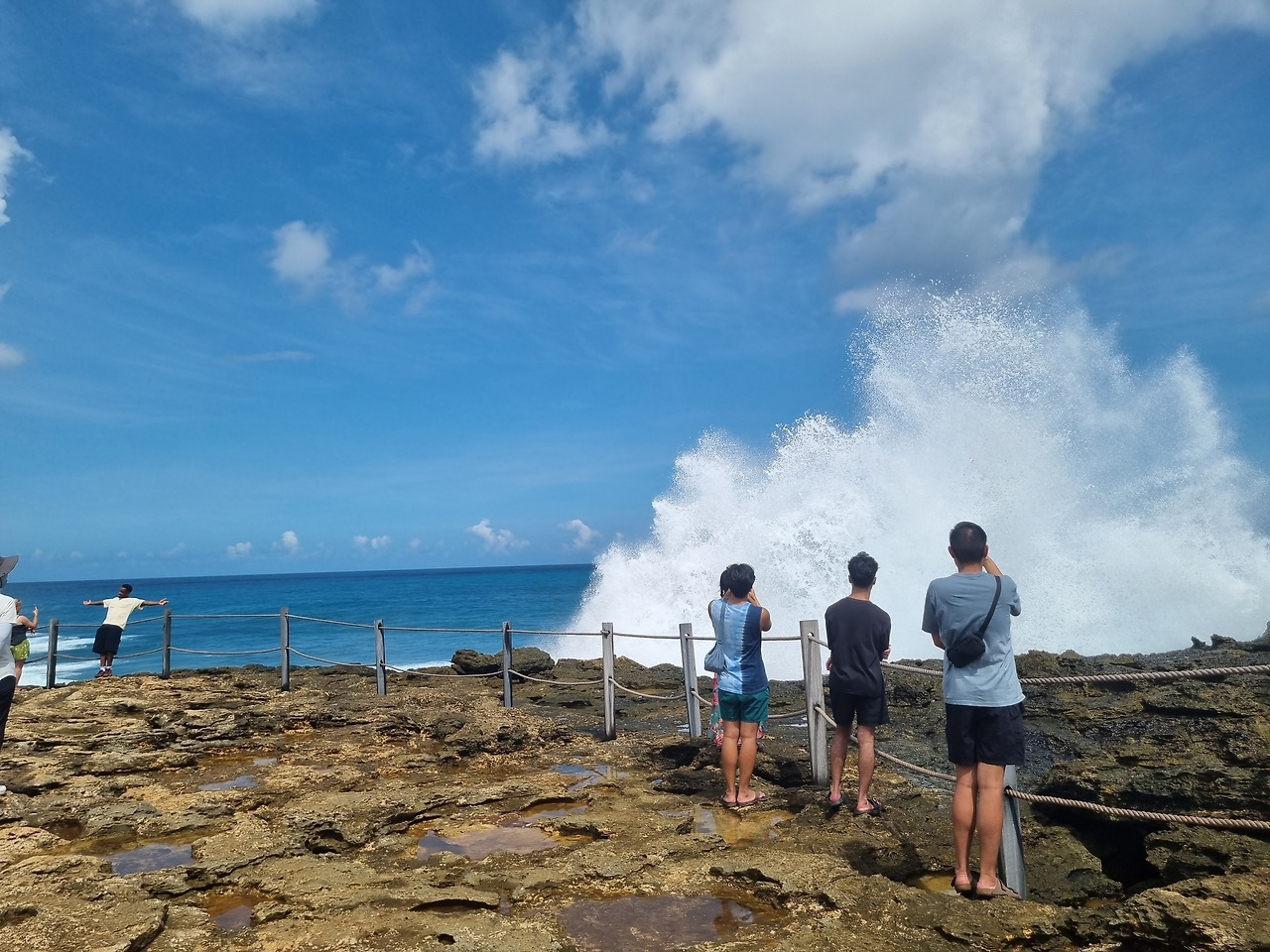가까이 다가가니 쉴새없이 집채만한 파도가 미친듯 몰려와 절벽을 때리고 수십미터 공중으로 솟구친다. 거센 해류가 독특한 지형을 만나 위로 솟아오르는 극적인 장면-워터 블로우를 보여주는 장소다. 파도가 육지를 때릴때마다 쿵하는 소리와 진동까지 느껴질 정도다. 백여미터 되는 절벽에 조금씩 다른 모양으로 거센 파도가 친다. 우린 기이한 자연 현상을 구경하는 걸 좋아하는데 여긴 정말 엄청나다.