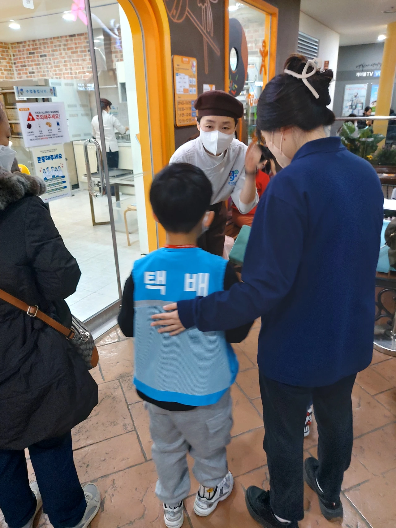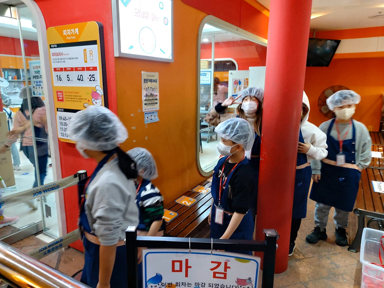 다시 아들의 손을 잡고 근처의 피자가게로 향했다. 피자를 만드는 체험존이었는데, 대기마감 3명을 남기고 도착했다. 다행히 체험을 할 수 있었다. 피자가게에서도 약 40분 정도 피자를 만드는 체험을 진행했다. 나는 창 밖 저 멀리서 아들이 만드는 모습을 지켜봤다. 앞의 요리 선생님의 설명을 듣고 옆의 친구들과 함께 피자를 만들고 있었다. 30분 정도가 지나니 피자 한 판을 손을 들고 당당히 체험장을 나오는 아들의 모습이 보였다.