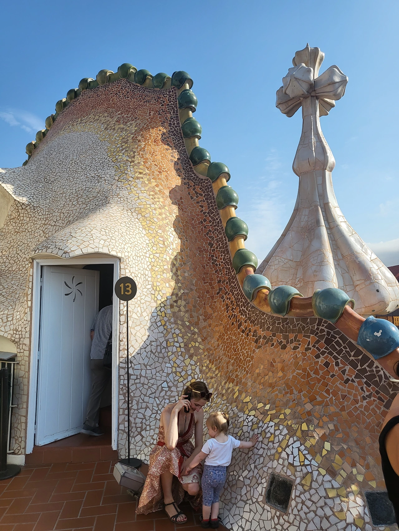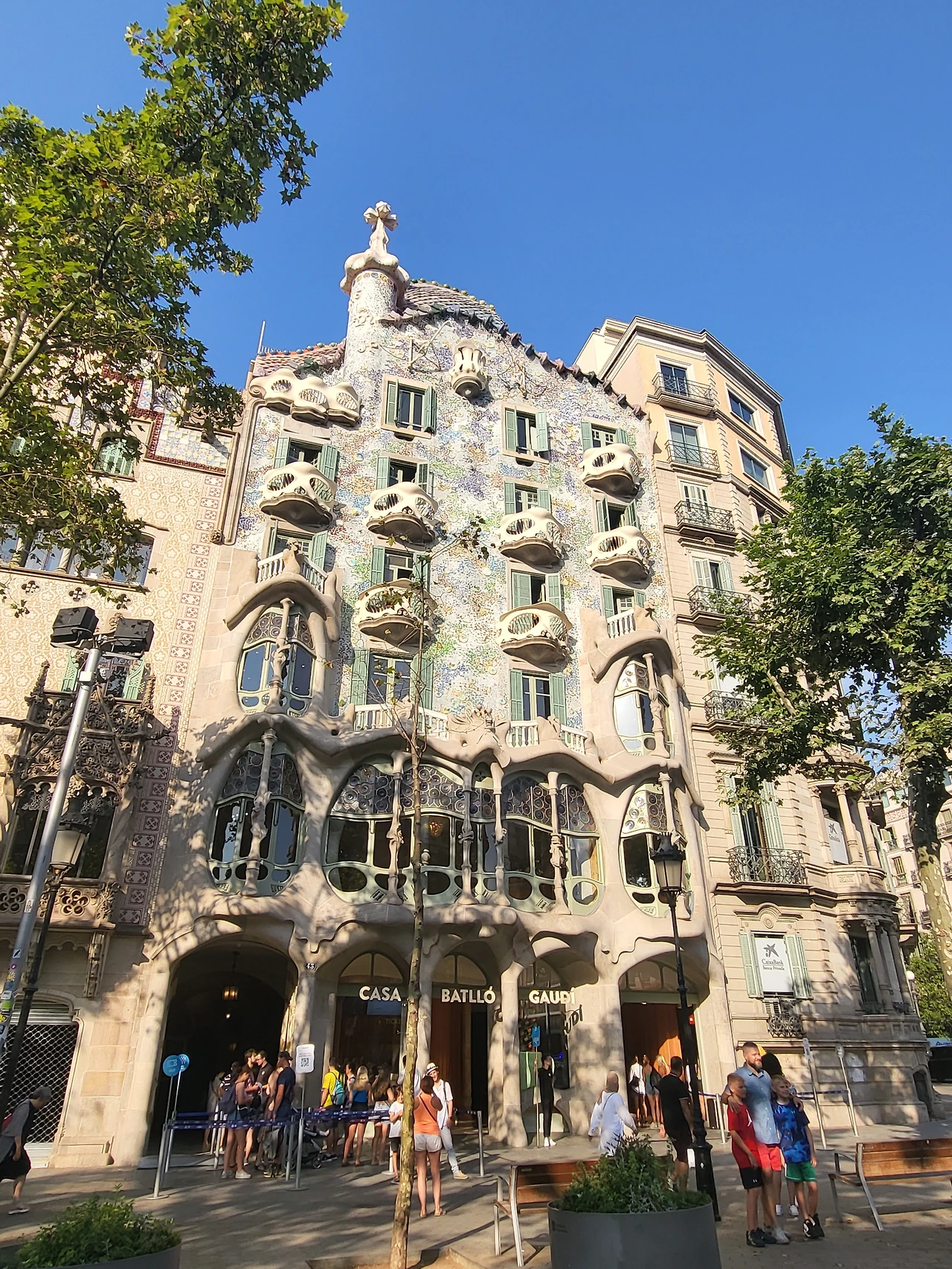 예약 시간은 오전 9시 30분. 15분 전부터 입장이 가능하였기에 서둘러 까사 바트요로 향했다. 택시를 타고 8시 50분 정도에 도착했다. 도착해 보니 까사 바트요 주변에 상당히 많은 한국 사람들이 모여 있었다. 며칠간 여행하면서 주변에 만나지 못했던 한국 사람들이 여기에 다 모여있는 듯했다. 대략 40~50명 정도가 모이니, 거의 한국의 관광지 같은 분위기였다. 우리는 한국 사람들과 함께 입장하니 편하게 이야기하면서 둘러볼 수 있을 것이라고 생각했다. 그런데, 아니었다. 다들 겉에서 설명만 듣고 사진 몇 장 찍고 유유히 사라지고 있었다. 9시가 조금 넘어서 주위를 둘러보니 한국 사람들은 한 명도 보이지 않았다. 그 사람들은 가우디 투어를 하고 있었다. 까사밀라, 카사바트요, 사그라다 파밀리아 성당, 구엘 공원 등을 가이드와 함께 여행하는 가우디 투어였던 것이었다. 반나절 동안 여기저기를 이동하는 투어. 사실 나와 아내도 그 투어에 참여하고 싶었지만, 어린아이가 있었기에 더운 여름에는 불가능했다. 대신 우리는 가족이 하루에 1~2곳씩 셀프 가우디 투어를 다녔다. 오늘은 까사 바트요 (casa batllo) 투어. 이런 것이 우리 가족에게 맞는 바르셀로나 여행 방식이었다.