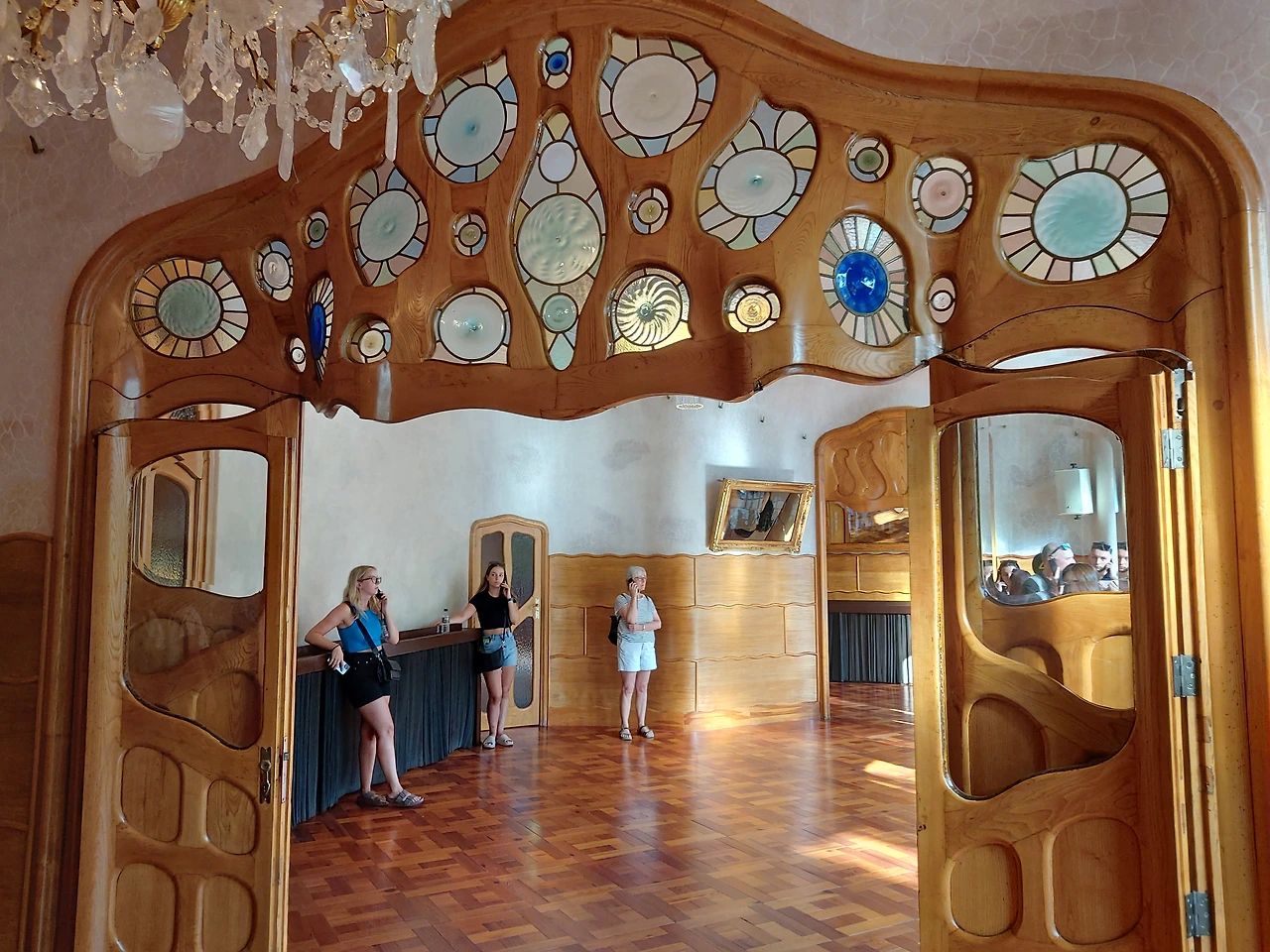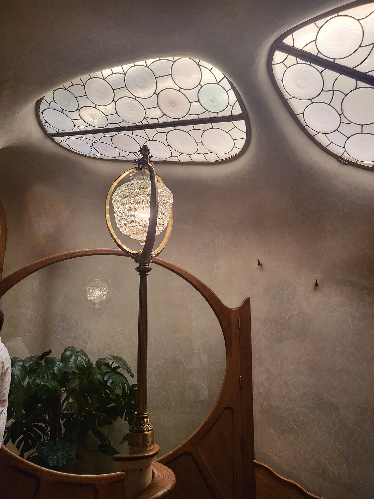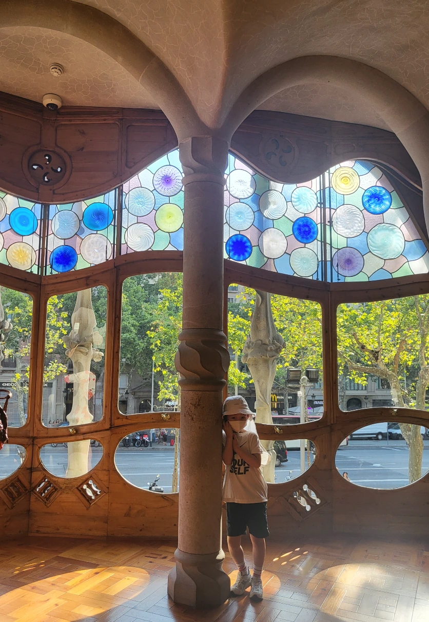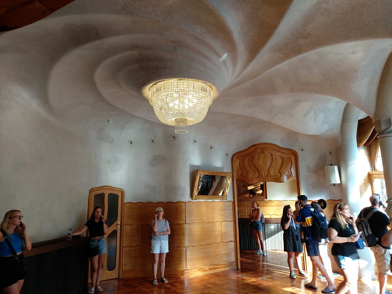 오전 9시 20분쯤에 우리 가족이 카사 바트요 입장을 시작했다. 한국어 오디오 가이드 북을 귀에 꽂고 설레는 마음으로 조심스럽게 입장을 했다. 가장 먼저 현관 입구로 향했다. 거북이 껍질 모양의 채광창과 곡선 모양의 둥근 천장, 화려한 목조 계단이 나타났다. 단단한 나무로 만들어진 목조 계단을 오르면 2층에 메인 홀이 나왔다.