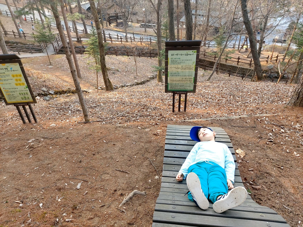 방에서 나오니 바로 옆으로 데크로 만든 편안한(?) 등산로가 있다. 휠체어를 타고 온 분들이나 어린이들, 등산을 자주 즐기시지 않는 그런 사람들을 위해 마련해 놓은 산책로다. 한 30여분 정도 계곡을 주위로 만들어진 무장애로를 걸으니 살짝 땀이 나는 듯하다.