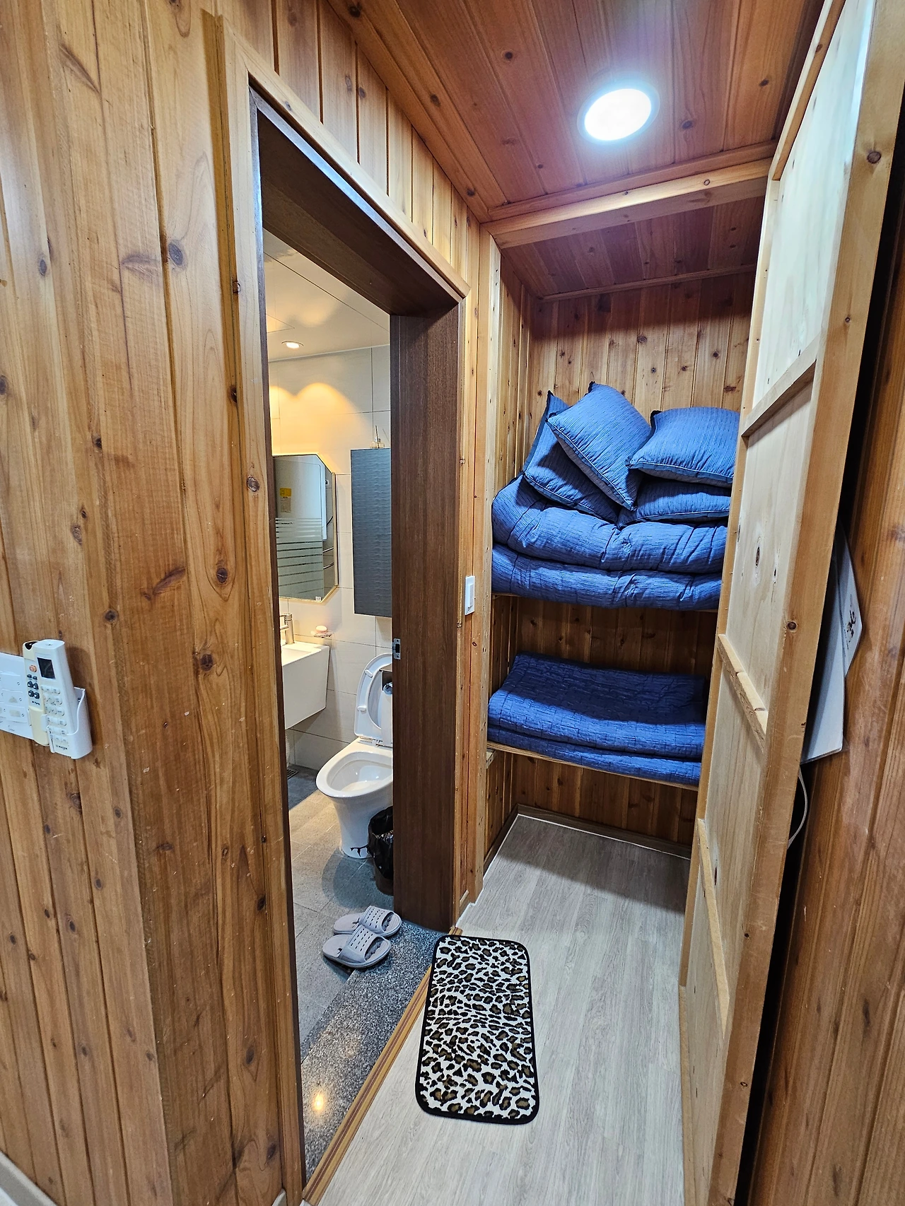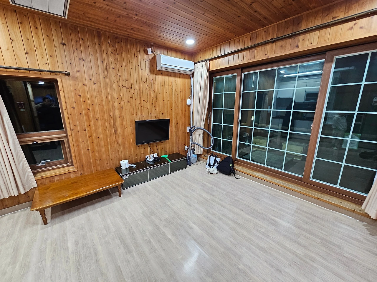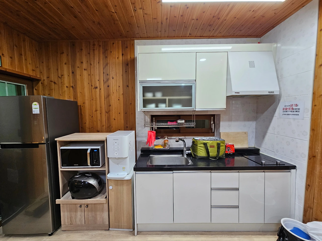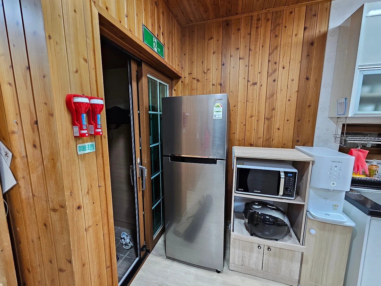 문을 열고 들어서는 순간 깔끔한 시설이 눈에 들어왔다. 냉장고와 전자레인지, 밥솥은 물론, 정수기까지 모든 것이 준비되어 있었다. 앞으로 펼쳐진 넓은 창으로 저 멀리 호남의 산맥에 그대로 눈에 들어왔다. 보기만 해서 가슴이 '뻥' 뚫리는 그런 풍경이었다. 테라스는 가족들이 이용할 수 있는 4인용 식탁과 함께 족욕기도 준비되어 있었다. 멋진 풍경을 즐기면서 따뜻한 물로 족욕까지 할 수 있는 곳이 바로 이곳이었다. 답답한 도시 생활에 지쳐 있는 우리 가족에서 잠시나마 자연을 벗 삼아 행복을 즐길 수 있는 공간임이 틀림없었다.