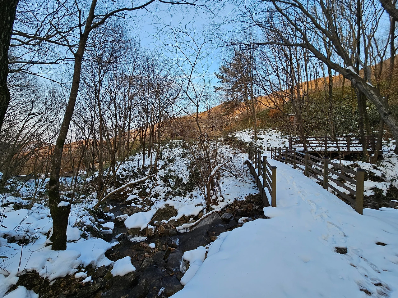 지난 봄에는 첫 번째 길로 달렸고, 이번 겨울에는 두 번째 방향으로 휴양림을 찾았다.