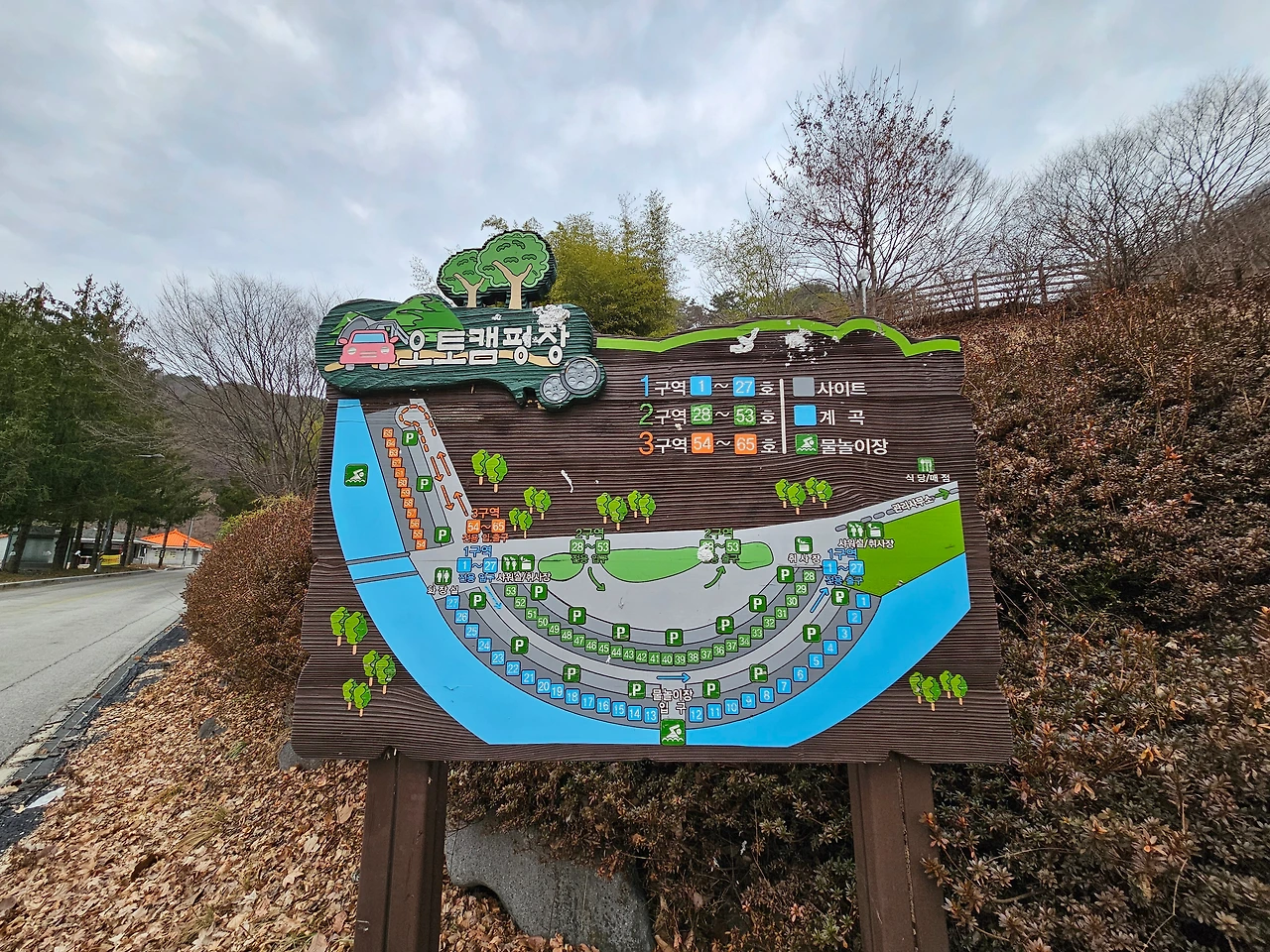 내려오는 길에 오토캠핑장과 목재문화체험관에 들렸다. 이곳의 오토캠핑장은 자동차 캠핑을 위한 최적의 환경과 시설을 갖추고 있어 캠퍼들이 가장 선호하는 캠핑장으로 손꼽힌다. 규모는 최대 300여 팀을 동시 수용할 수 있고 주차공간과 이어진 캠핑장이 마련돼 있고 취사시설과 화장실 등의 편의시설도 완벽히 갖춰져 있었다. 캠핑장 옆으로 식당과 매점이 있어 간단한 식사나 어렵지 않게 구할 수 있어 보였다.