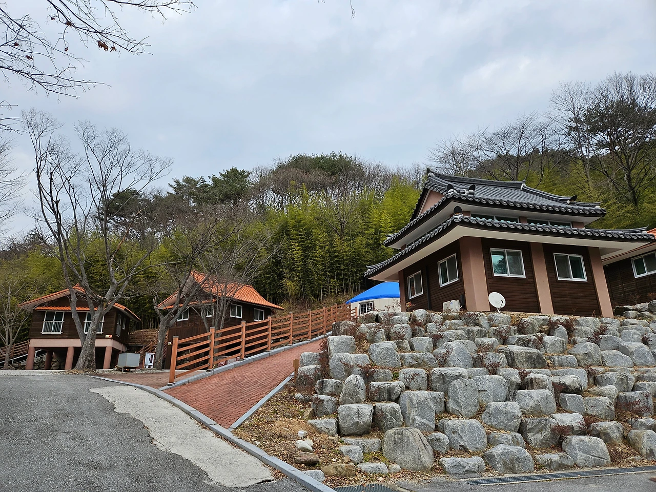 집을 풀고 계곡 쪽으로 내려가보았다. 휴양관이 언덕에 위치해 있기에 제법 많은 계단을 걸어서 계곡으로 향했다. 모든 건물이 깨끗하게 잘 정돈되어 있었고 상당히 관리가 잘된 모습이었다. 보기에 부족한 것 없이 모든 것이 최고였다. 여기저기 둘러보다가 가장 호기심을 가지고 지켜본 숙소가 다문화체험동. 중국, 일본, 베트남, 필리핀 방이 있었는데 어떤 모습인지 하룻밤 머물고 싶다는 생각이 들었다.