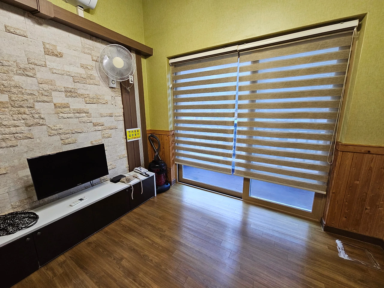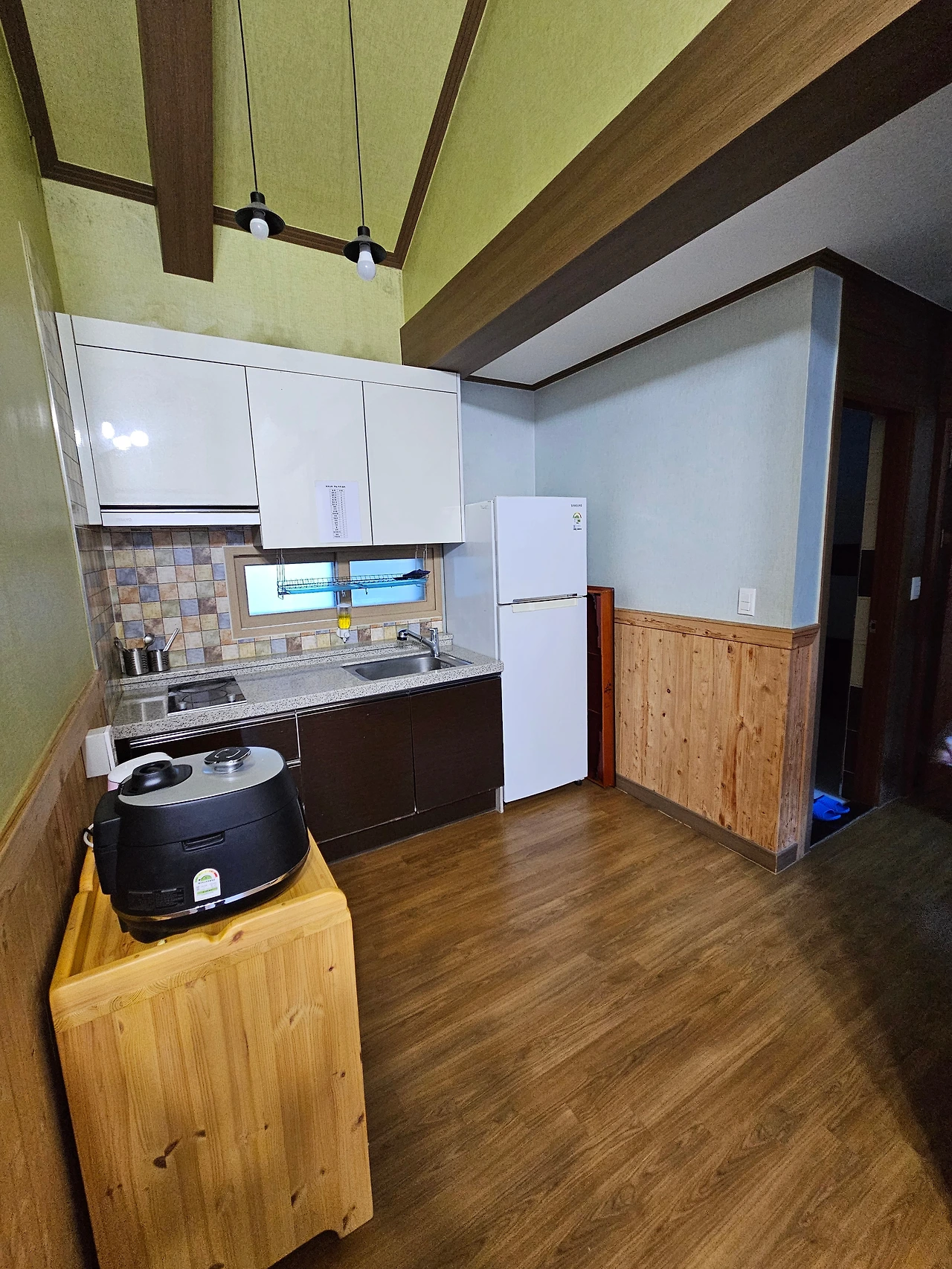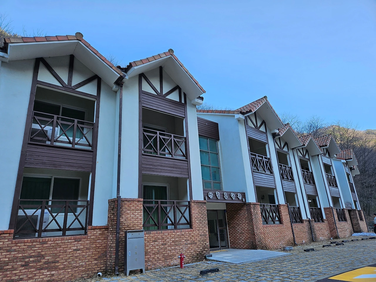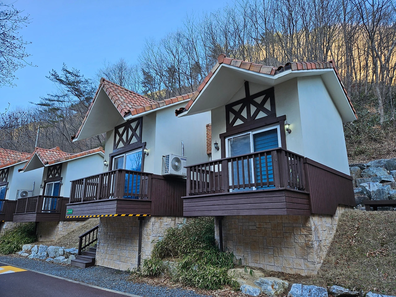 조금 더 달리니 커다란 광장이 나왔고 그 앞에 관리사무실 건물이 나왔다. 사무실에 들러서 키를 건네받고 바로 건너편의 숲 속의 집으로 향했다. 숲 속의 집은 개울 건너편에 나란히 위치하고 있었다. 맑게 흐르는 계곡이 눈앞에 펼쳐지고, 차량 이동이 쉽도록 앞으로 도로가 잘 정리되어 있었다. 숲 속의 집에는 테라스가 2개였다. 문을 열고 들어서면 깔끔하게 정리된 거실이 먼저 우리를 반겨주었다. 텔레비전과 넓은 통창이 눈에 들어왔고, 반대쪽에는 싱크대와 냉장고, 전자레인지 등이 잘 준비되어 있었다. 중간 통로에는 화장실이 있었고, 건너편에는 큰 방이 하나 있었다. 거실과 방에는 모두 테라스가 있었다. 테라스 밖으로 나가니 산뜻한 맑은 공기와 졸졸졸 흐르는 맑은 계곡물소리가 내게 웃음을 선물해 줬다.