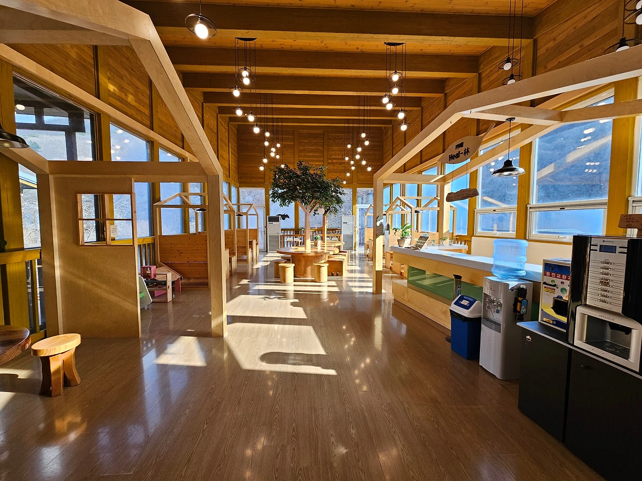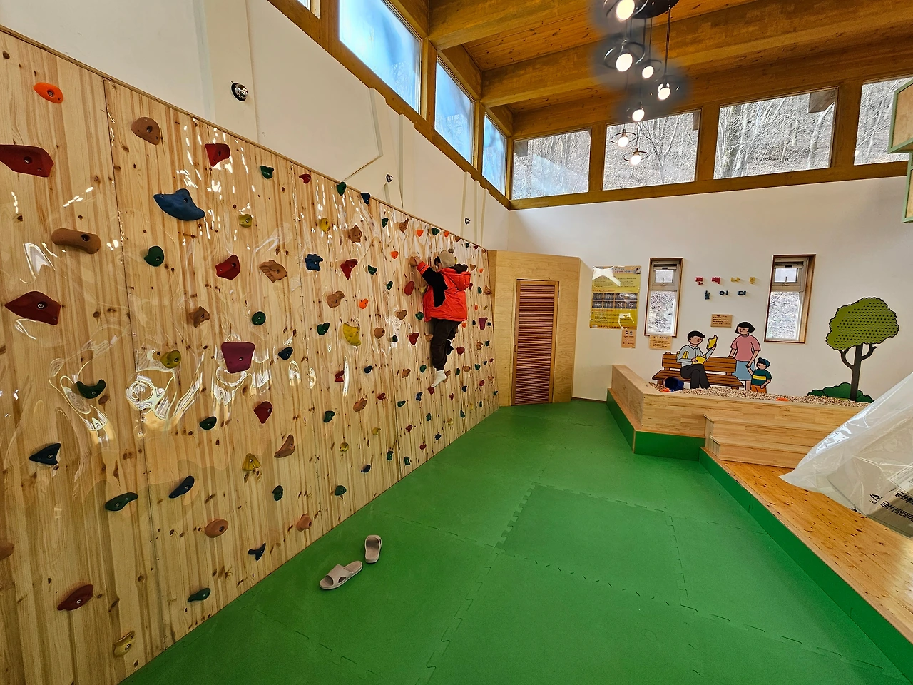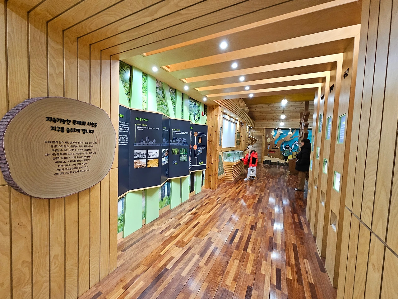 아이와 함께 작은 목공예 작품을 하나 만들었다. 목공프로그램은 1~2만 원의 재료비를 내고 다양한 제품을 만드는 작업이었는데, 30분 정도면 가능한 체험이었다. 가족들이 특별한 경험을 하기에는 부족함이 없어 보였다. 2층으로 올라서 숲에 대한 전시관을 둘러보고 입구 쪽에 있는 어린이용 암벽등산 체험도 즐길 수 있었다. 유아용 암벽등반 체험시설은 실내에 있어서 추운 날씨에도 쉽게 이용이 가능했다.