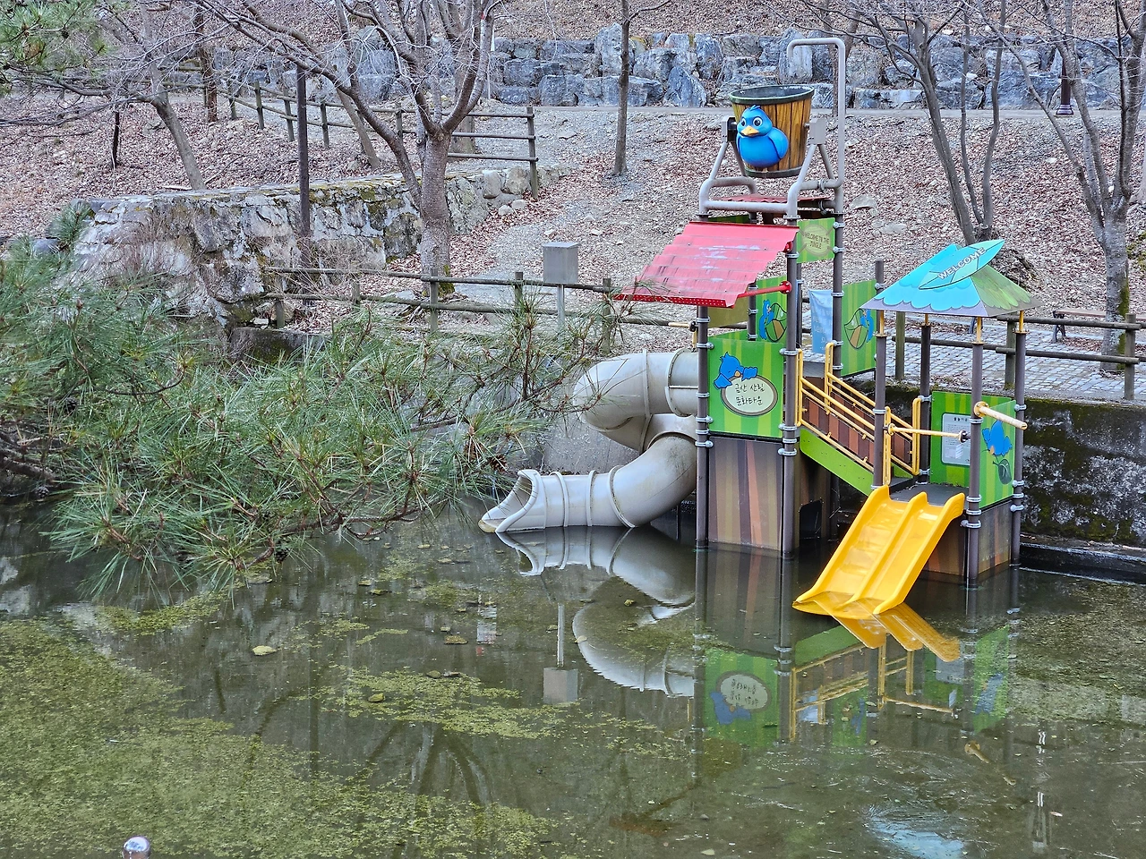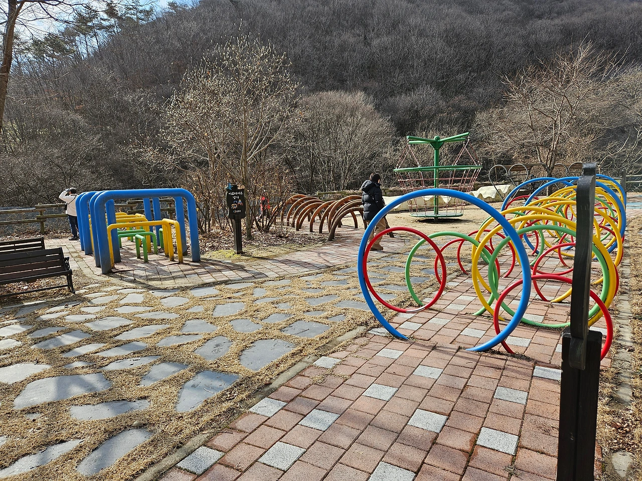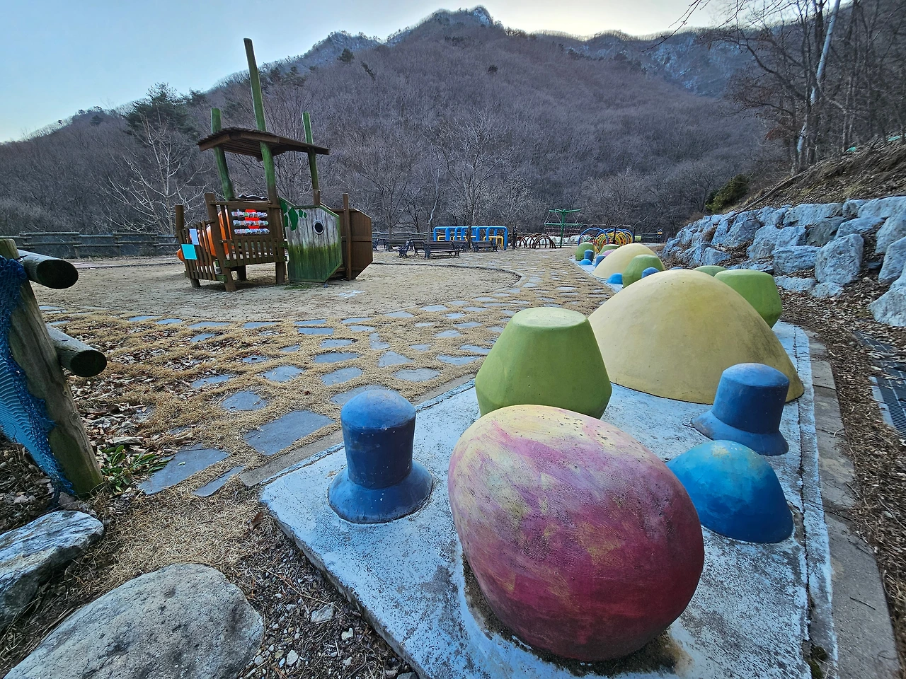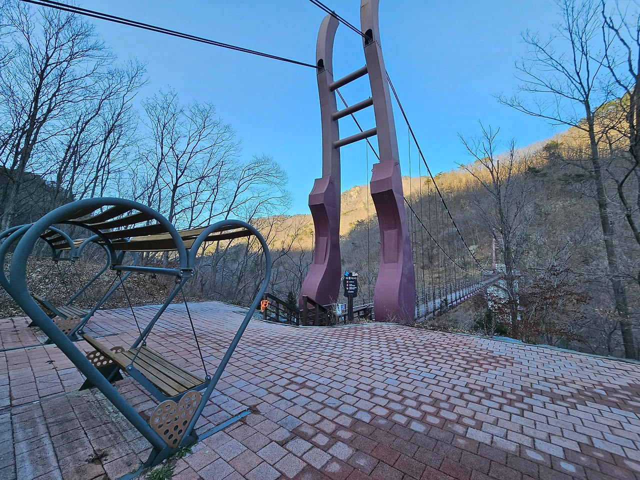 하늘 다리 풍경하늘 다리를 내려오는 기에 작은 어린이 놀이터가 있어서 잠시 들려서 놀이터를 즐기기도 했다. 아이는 여기저기를 달리며 자연을 흠뻑 즐기고 있었다. 내려오는 길은 걸을 때마다 소소한 행복감이 밀려왔다. 그냥 편안하고 좋았다. 아기자기하게 모든 공간이 잘 꾸며져 있었고, 숲과의 조화도 완벽해 보였다. 내가 다녀본 어떤 자연휴양림보다 모든 것이 잘 갖춰져 있는 100점짜리 자연휴양림이었다.