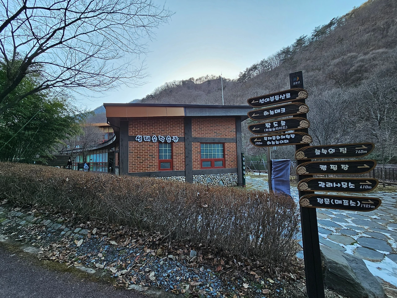 중부권 최대의 복합 산림문화공간인만큼 입구부터 그 규모가 느껴졌다. 입구 출입문을 지나서 관리 사무실까지는 약 2km 정도. 계곡 옆으로 이어지는 포장된 길을 따라서 깔끔한 야영장과 오토캠핑장이 잘 정돈되어 있었다. 공동 화장실과 세면장 등의 편의시설도 잘 갖춰져 있었다. 오지에 있는 공간치고는 상당히 관리가 잘 되어있다는 느낌이었다. 계곡물이 맑았기에 날씨 좋은 여름철에는 발 디딜 틈이 없을 정도가 인기가 많을 것 같았다. 분명히 첫 느낌은 기대 이상이었다.