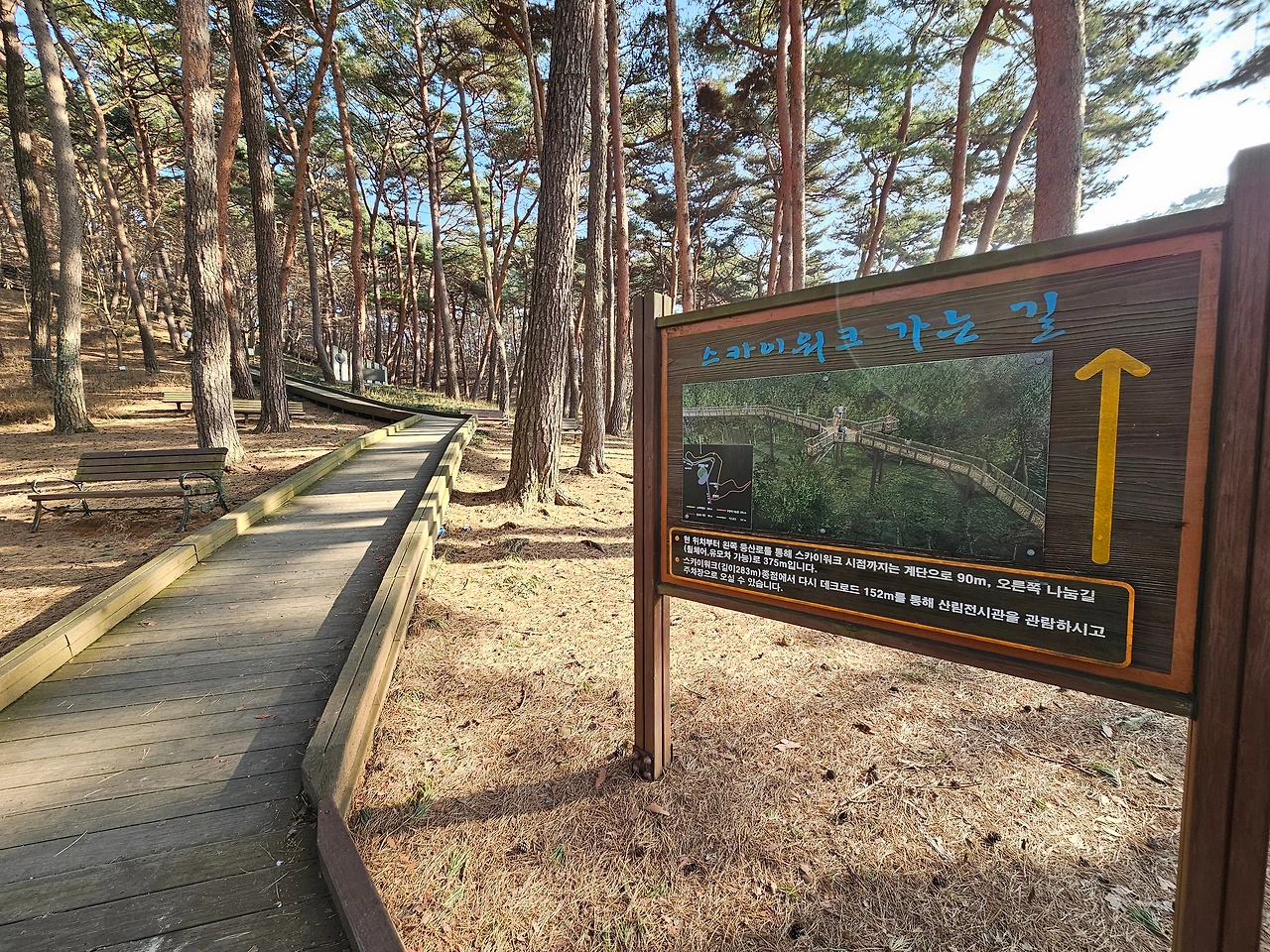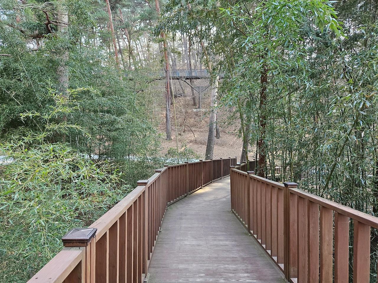 특히 이곳 휴양림에는 스카이워크라고 불리는 하늘 산책로를 조성되어 있어서 나무 사이를 걸으며 숲을 감상할 수 있다. 우리 가족도 스카이워크에 올라서 숲을 조금 더 가까이에서 느낄 수 있었다. 사진 찍기도 좋으니 꼭 한 번 그 길을 걸어보길 추천한다.