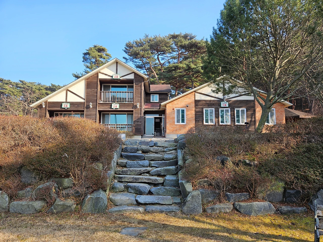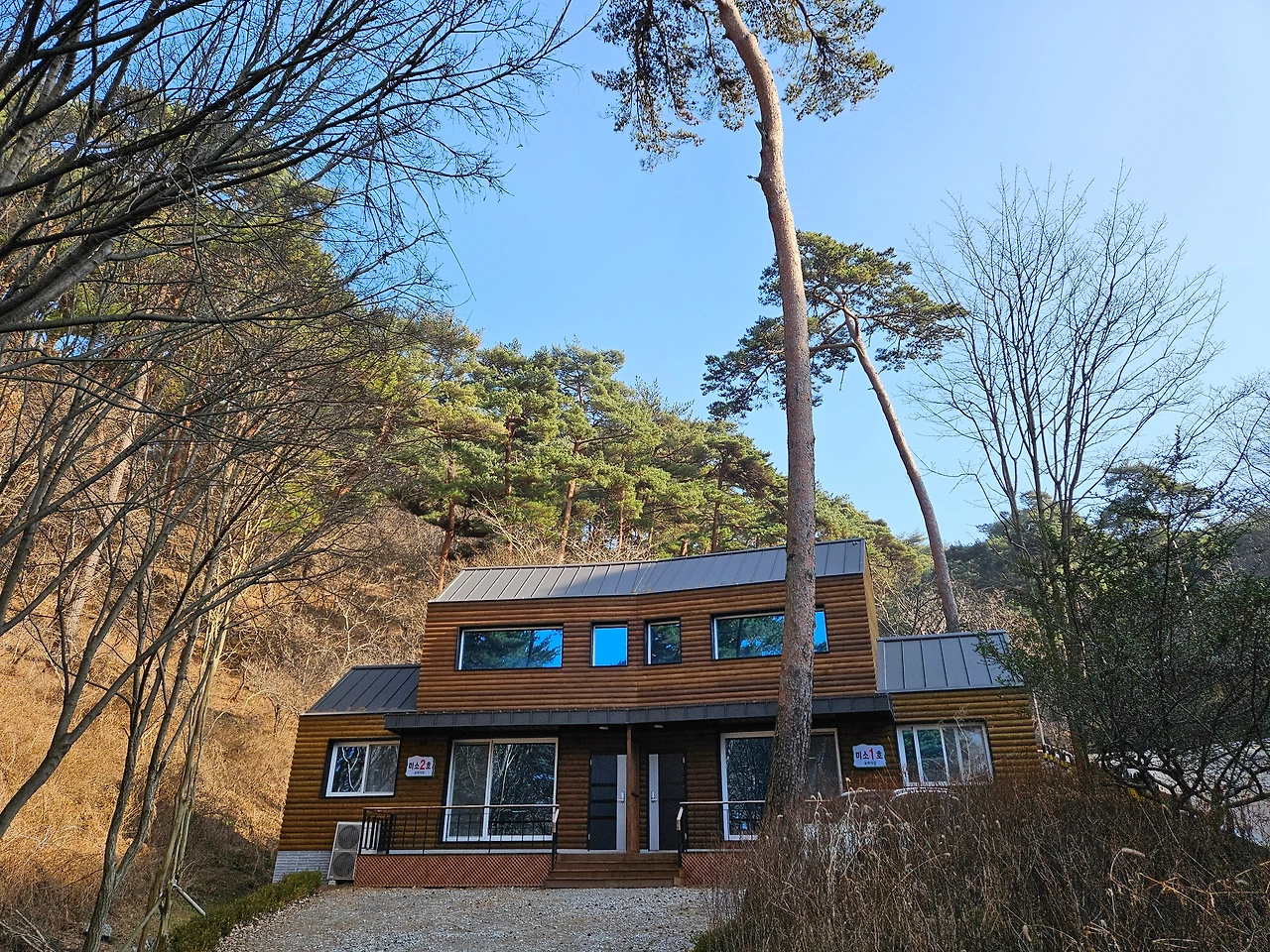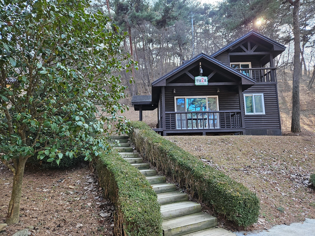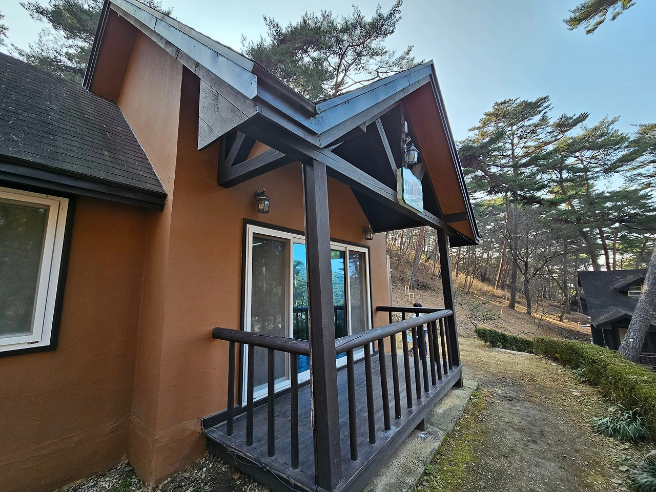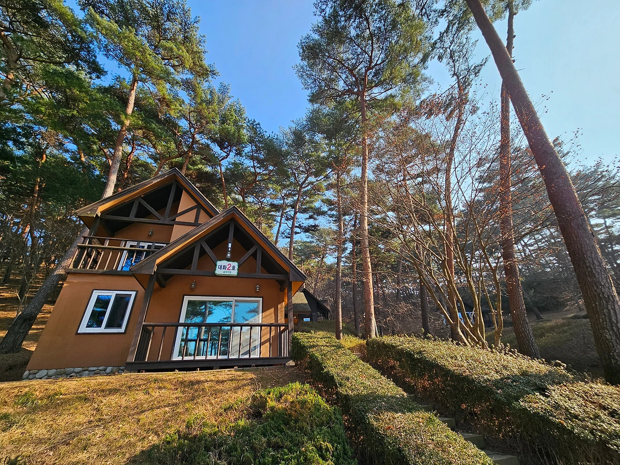 소나무 숲에 아기자기하게 모여있는 멋진 숙소들을 둘러보며 안쪽으로 이동했다. 드디어 우리 숙소를 찾았다.