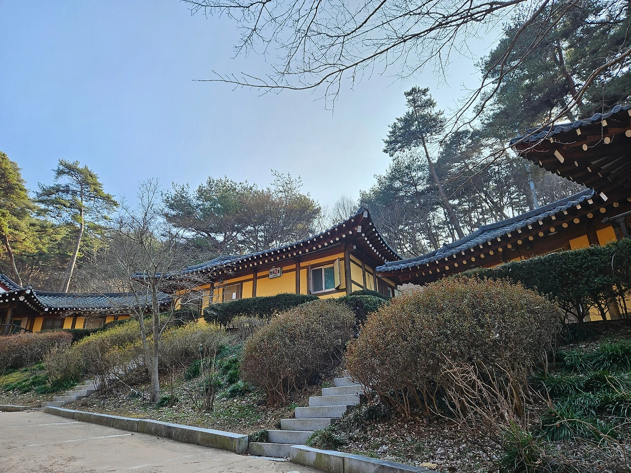 휴양림 가장 깊숙한 한옥동 앞에 위치하고 있었다. 우리 숙소와 마주 보며 2층으로 만들어진 미소동 숙소가 환한 얼굴도 마주하고 있었다. 집 옆으로 잘 정돈된 주차장에 차를 세우고 짐을 챙겨서 숙소로 들어갔다. 과연 어떤 모습일까 궁금했다.