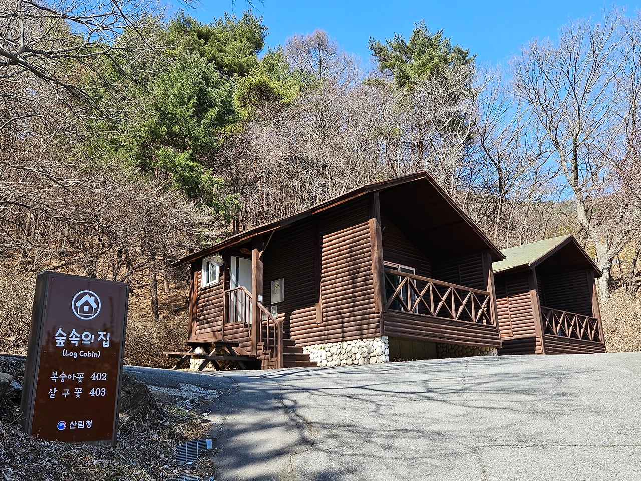 매표소 뒤쪽에 구절초, 개나리 등의 7개의 숲 속의 집이 있고 조금 더 올라가면 산림문화휴양림과 숲 속의 집 5개가 있다. 앞쪽은 조용하게 휴양림을 즐기기에 좋고, 뒤쪽은 등산과 함께 휴양림을 즐기기에 좋은 장점이 있다. 특이하게도 자연휴양림 안쪽에는 민가들이 많이 있었다. 이 두 지점 중간에는 펜션이나 작은 매점이 있었다. 이런 독특한 풍경이 조금은 어색하기도 했다.