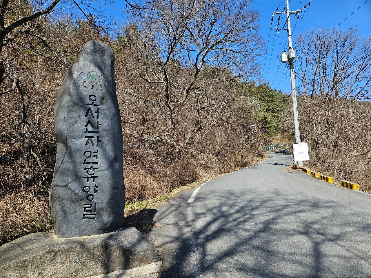 산세가 웅장한 것이 분명 오서산이 틀림없었다. 한적한 시골길을 달려서 휴양림 입구로 향했다.