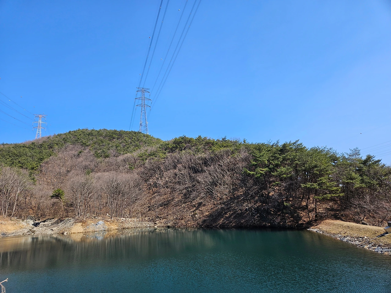 휴양림 안내표지석이 나왔고 잠시 후에 작은 호수 하나가 나왔다.