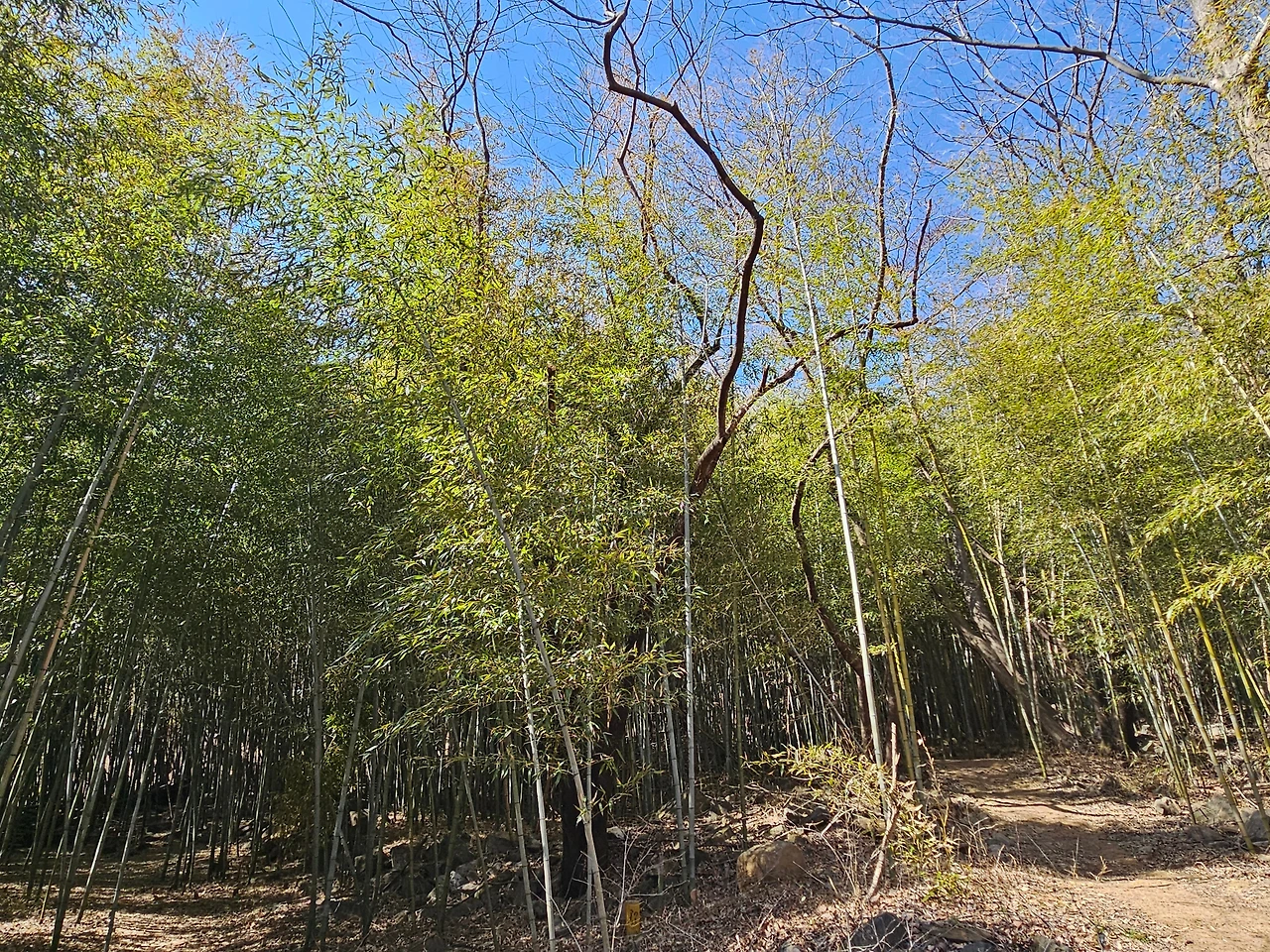 살짝 오르막 길을 걸으니 근사한 산책로가 보였다. 길게 뻗은 대나무 숲길이 었다. 그 길을 걸으니 시간이 멈춰버린 듯 일생의 생각은 모두 사라졌다. 고요함 속에서 대숲을 지나는 바람 소리만이 들릴 뿐이었다. 맑은 공기를 깊이 들이쉬면서 잠시 눈을 감아보았다. 이런 게 행복감일까? 그 순간은 아무 걱정도 없었다. 그냥 자연 속에 있다는 것이 좋았고 자연과 동화되는 내 몸이 너무나 편안하게 느껴졌다.