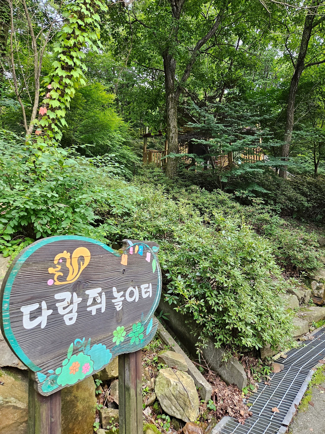 좌구산 천문대에서 땀을 식힌 후에 다시 하산길. 오르는 길에는 힘들어서 몰랐지만 내려오는 길에는 보지 못했던 다양한 것들이 보였다. 멋진 산림욕 숲과 함께 집라인을 탈 수 있는 공간과 아이들만의 특별한 다람쥐 놀이터까지 숲에서 즐길 수 있는 여러 가지 체험 공간들이 눈에 보였다.
