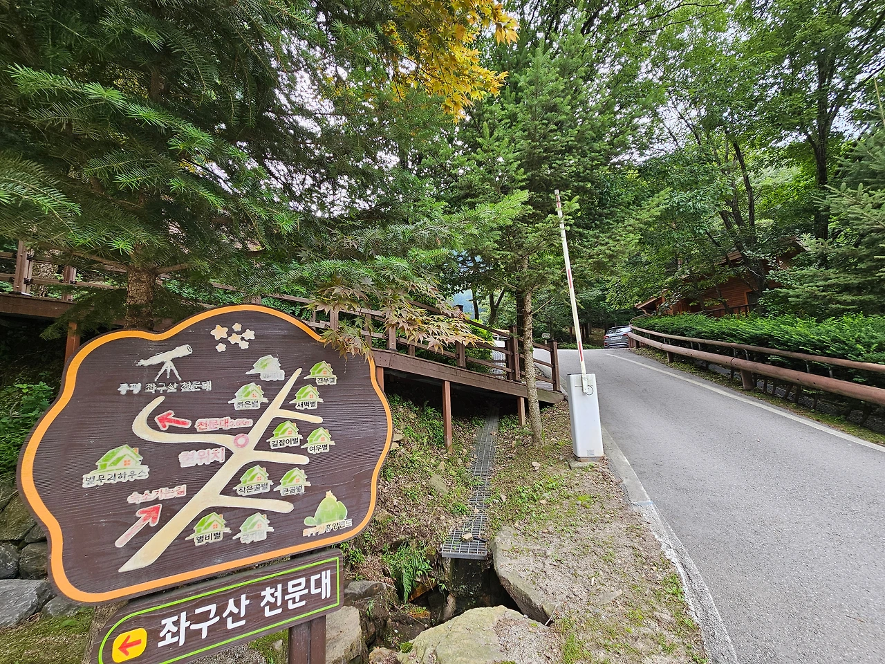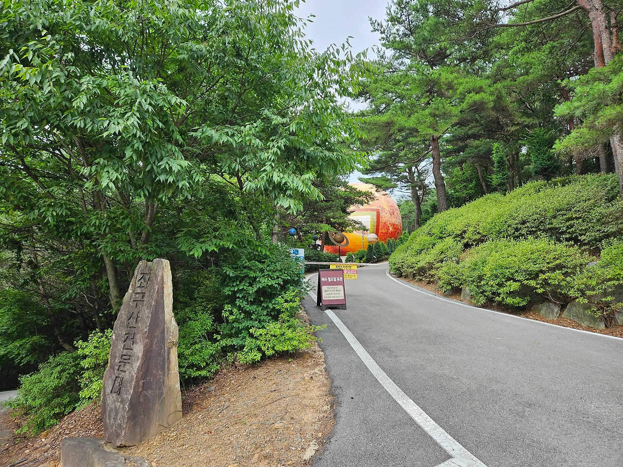 밖으로 나오니 주황색의 예쁜 건물이 눈에 들어왔다. 별무리하우스라고 불리는 연합 동이었다. 숲 속의 집과 더불어 좌구산 휴양림의 대표적인 숙소였고 2~3명이 여행을 온다면 별무리하우스에 묵어도 충분히 모든 것을 즐길 수 있었다. 특히 이곳에는 식당과 매점이 있어서 밤늦게까지 과자나 아이스크림, 음료 등을 구매할 수 있었다. 매점 뒤쪽으로 이어지는 길을 따라서 약 15여분 정도를 걸었다. 자동차를 이용하면 금방 올라갈 수 있지만 그냥 걸어서 좌구산 정상 인근에 위치하는 전문대를 찾고 싶었다. 전문대로 이어지는 길은 은근 운치가 있었다. 차도였지만 지나는 차들이 거의 없었고 오롯이 나 홀로 그 길을 걷고 있었다. 하지만 더운 날씨가 만만치 않았다. 땀이 주룩주룩. 살짝 지쳐갈 즈음에 나무 잎 사이로 천문대의 모습이 살포시 보였다. 그리고 조금 더 오르니 천문대가 눈앞에 나타났다. 천문대는 유료로 운영되고 있었고 안으로 들어가면 전시관과 영상 체험 등 다양한 천문 관련 체험을 즐길 수 있었다. 밤에 오면 반짝반짝 별들을 즐길 수 있었다.