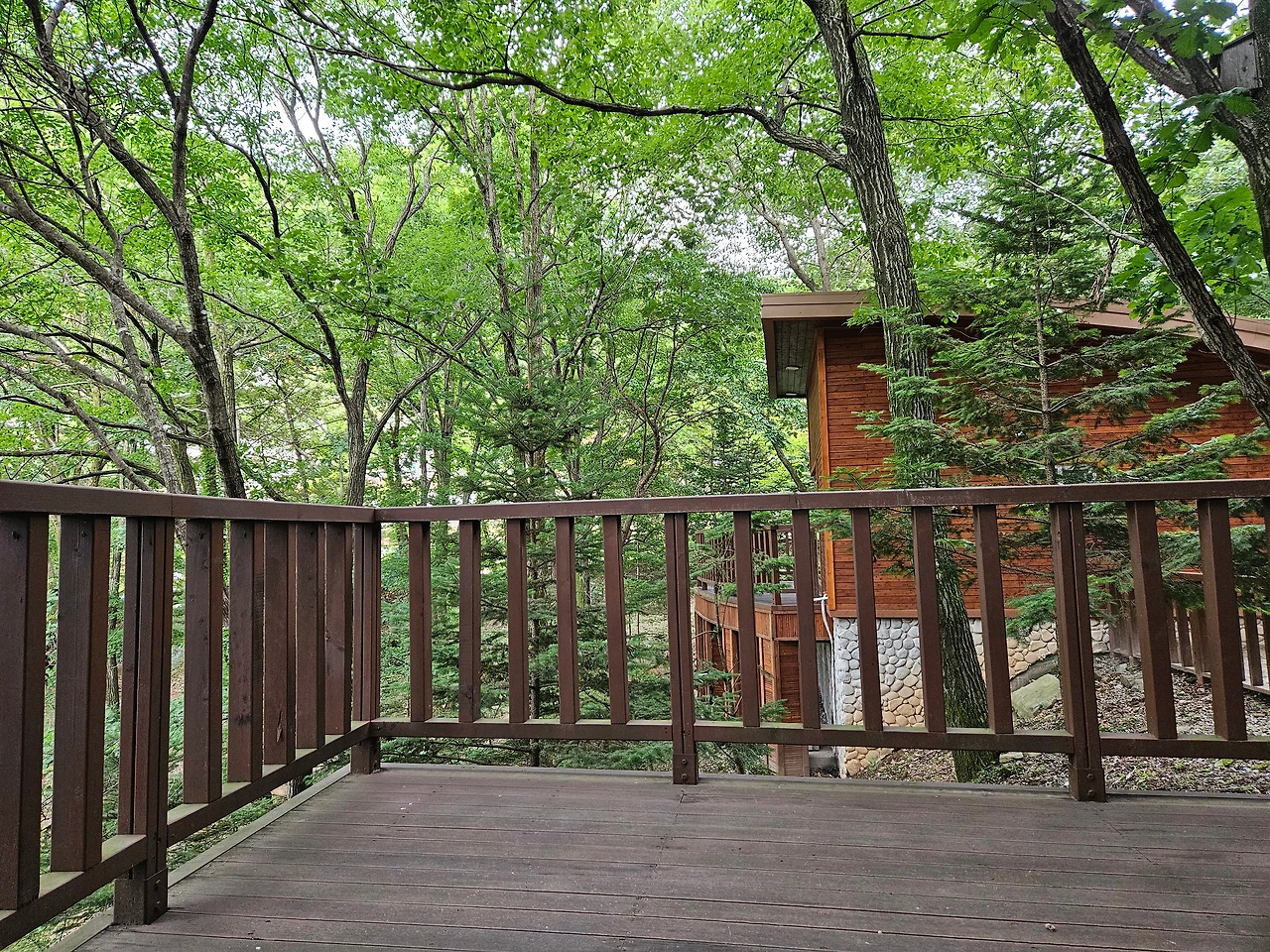 내가 예약한 큰별곰 방으로 차를 돌렸다. 큰별곰과 작은별곰이 나란히 있는 놓여있었다. 좀 더 안쪽에 있는 숙소로 들어갔다. 3인용 숙소라서 크게 기대를 하지 않았는데, 숙소는 기대 이상으로 크고 깔끔했다. 텔레비전과 밥솥, 에어컨, 그리고 드라이기와 수건까지 완벽하게 준비되어 있었다. 가장 마음에 든 것은 큰 통창과 집 앞으로 넓게 펼쳐진 테라스였다. 큰 창을 열고 나가기 확 트인 숲의 풍경이 눈앞에 들어왔다. 내가 바라던 바로 그곳이었다. 우선은 짐을 풀고 휴양림 한 바퀴를 돌아보고 다시 돌아와서 맥주 한 잔. 그것이 내 계획이었다.
