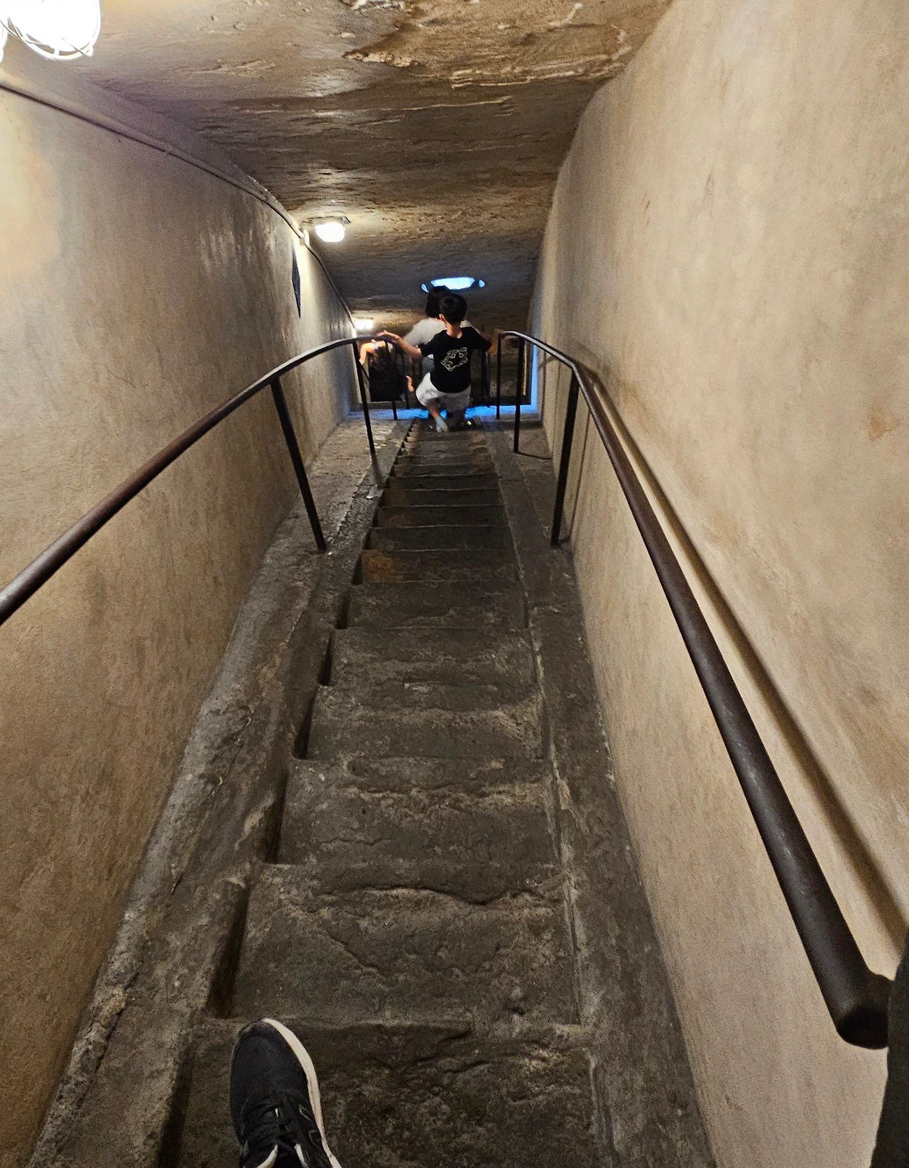 경사가 엄청나게 가팔랐기에 방심하면 크게 다칠 수 있었다. 손잡이를 힘껏 잡고 천천히 천천히 발걸음을 옮겼다. 올라온 길 그대로 다시 내려갔다. 다행히 내려가는 길은 그리 힘이 들지 않았다. 아들은 이런 길이 신기한 듯 훌쩍훌쩍 계단을 내려가고 있었다. 그렇게 빙글빙글 계단을 돌고 돌며 아래로 내려갔다. 내려가는 데 걸리는 시간은 10여분이 조금 넘을 듯했다. 5시 30분쯤 성당 투어를 마치고 우리는 입구로 돌아왔다.