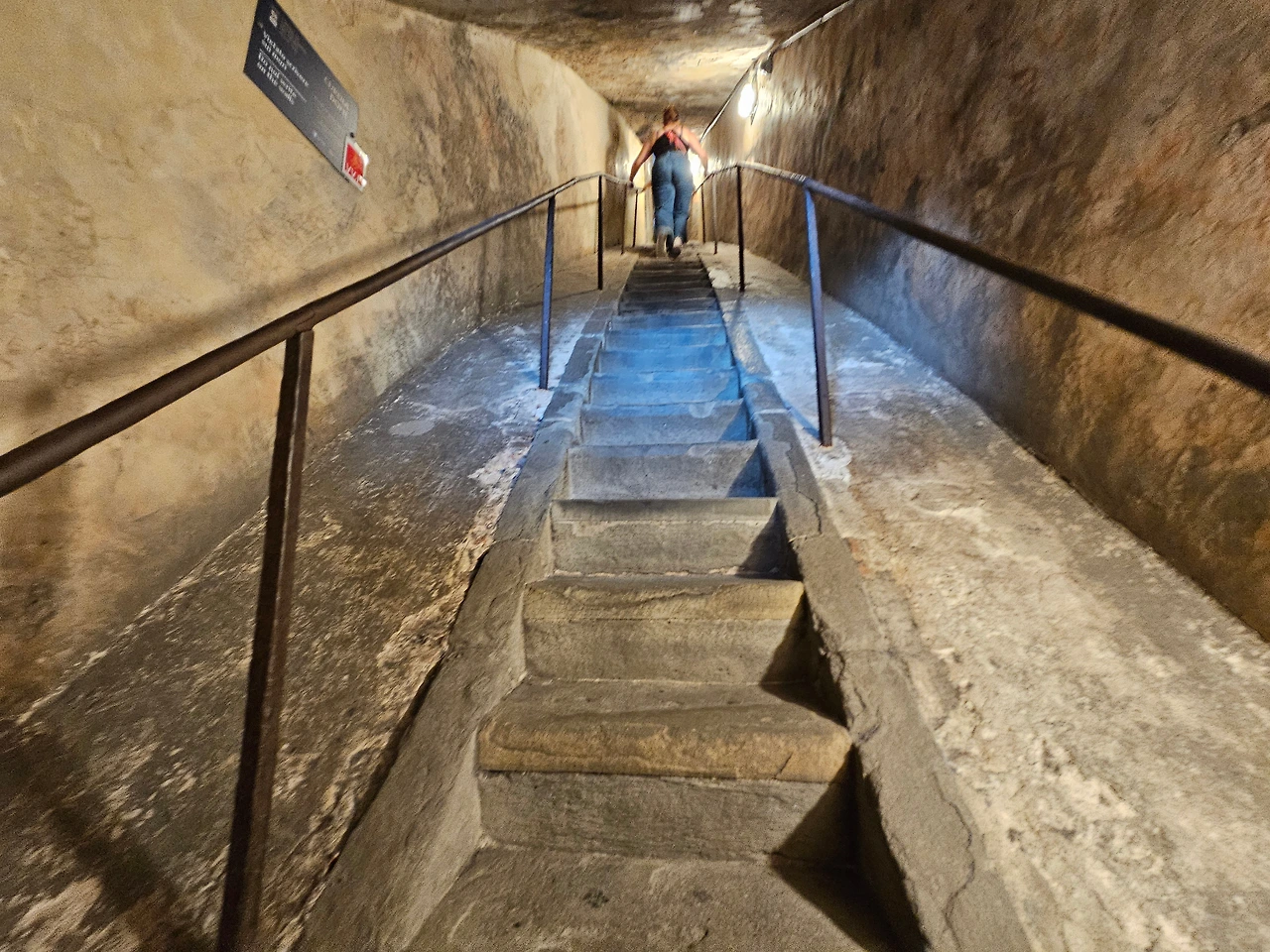 4시 30분이 되니 입장이 시작되었다. 우리 타임은 약 30명 정도로 보였다. 티켓을 체크하고 계단을 올랐다. 수백 년 전에 지어진 좁고 좁은 계단길을 올랐다. 올라가는 시간은 약 20분 정도 걸린다고 했다. 앞사람을 따라서 한 발짝 한 발짝 발걸음을 옮겼다. 10분 정도를 오르니 중간 지점이 나타났다.