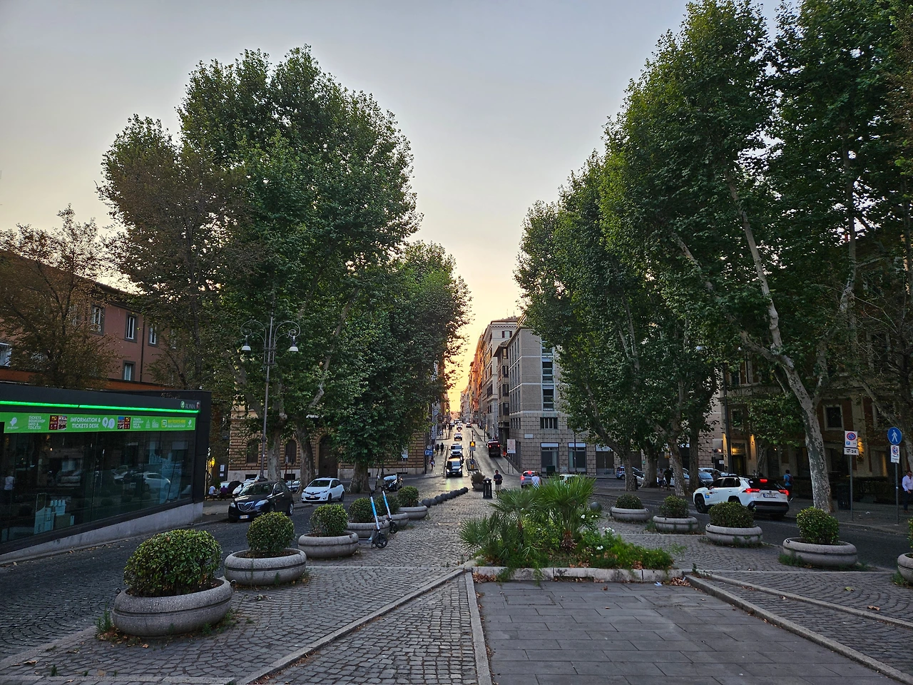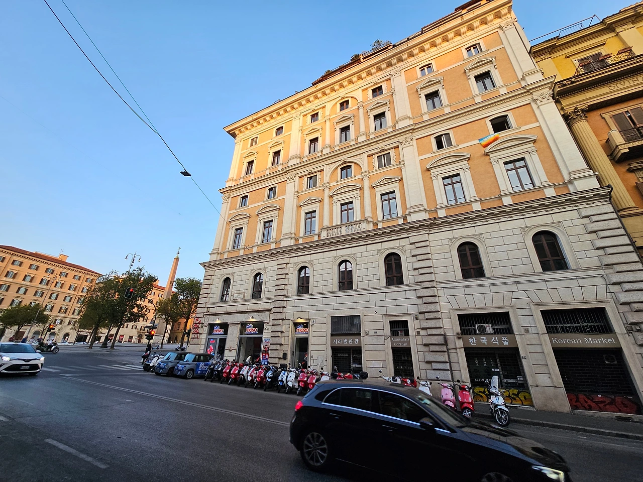 구글 맵으로 거리를 확인해 보니 걸어서 약 25분 정도. 택시를 타기에는 너무 짧은 거리였다. 그래서 아들 녀석의 손을 꼭 잡고 해가 지고 있는 로마 시내를 걸었다. 큰길을 따라서 쭉 직진하다가 좌회전. 저 멀리 콜로세움 비슷한 것이 보이기 시작했다. 길을 걸어가는 사람들의 수가 늘어난 것으로 보아서 그곳으로 가는 길이 맞는 듯했다. 그렇게 5분 정도를 더 걸었다.