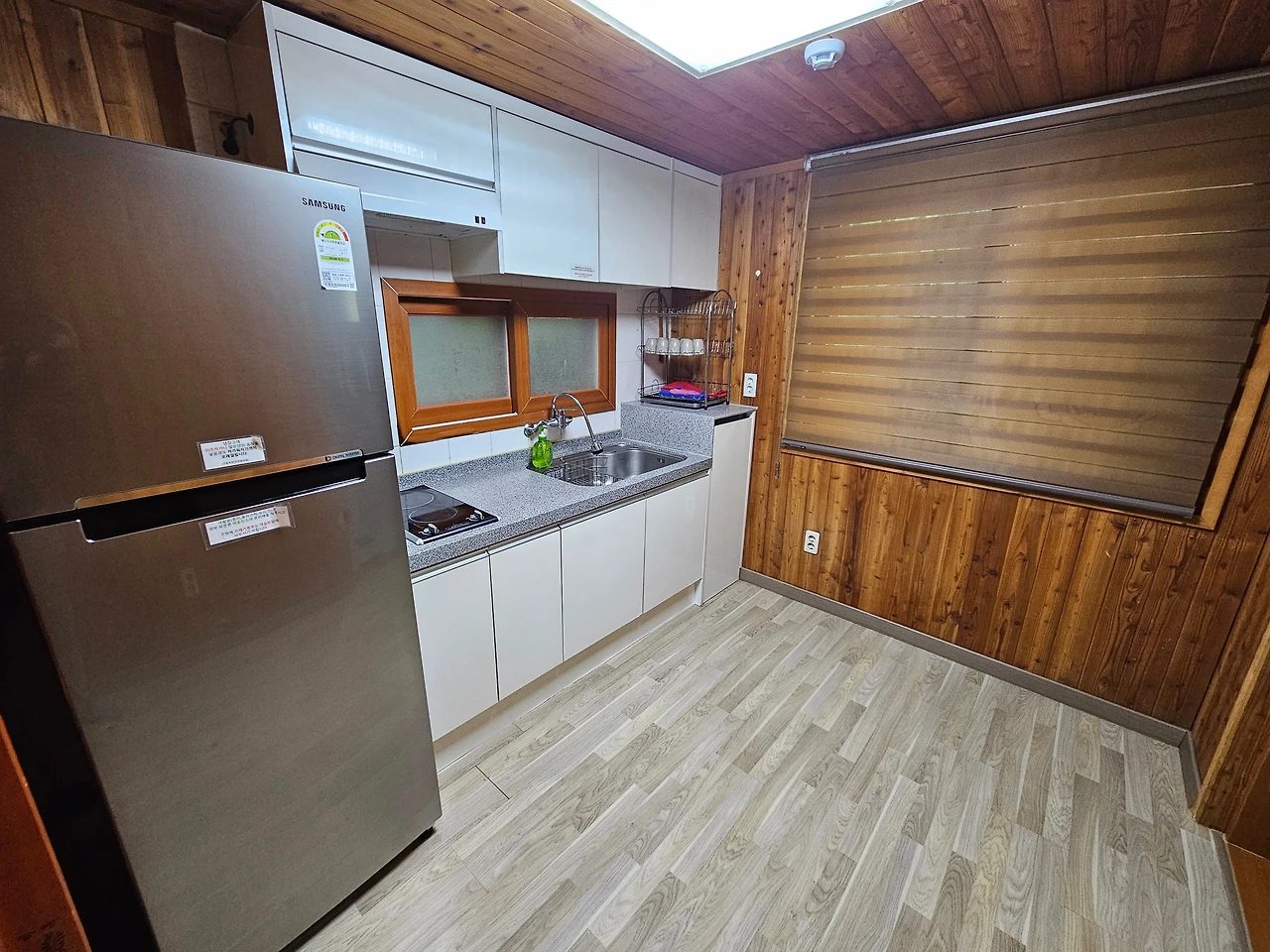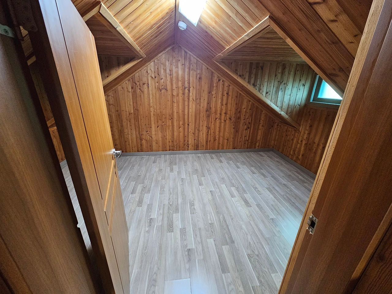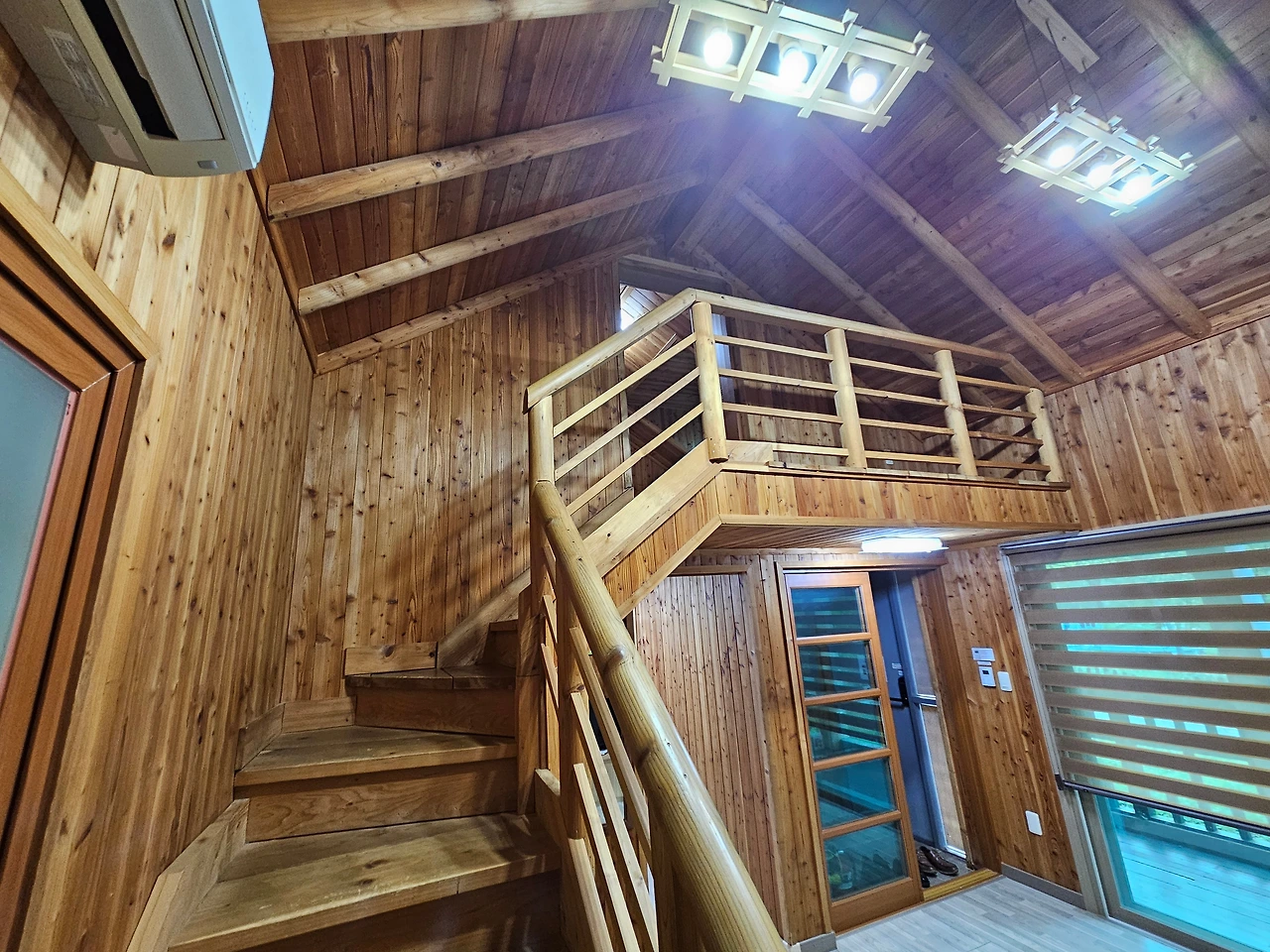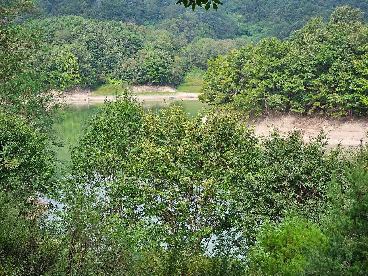원앙방 앞에 주차를 하고 짐을 풀었다. 원앙방 숲 속의 집은 2층으로 된 복층 숙소로 보였다. 언제나 그렇듯이 설레는 마음으로 문을 열고 숲 속의 집으로 들어갔다. 아담한 1층 거실이 나타났다. 서너 명이 머물기에 충분한 공간이었다. 거실 안쪽에는 부엌과 화장실이 있었고 그쪽 공간도 상당히 넓어 보였다. 거실에서 계단을 올라가면 2층에 꽤 넓은 방도 있었다. 너무 낡지도 않고, 그렇다고 너무 화려하지도 않은 깔끔하고 부족함 없는 숲 속의 집이었다. 밖으로 나가보니 앞마당 너머에는 안동호를 직접 눈으로 볼 수 있을 정도로 가까이에 있었다. 이곳 숲 속의 집이 휴양림에서 호수와 가장 가까이에 있는 공간임이 틀림없었다. 다만 호수가로 가는 길은 수풀과 경사지로 이어져서 접근하기가 쉽지는 않아 보였다.