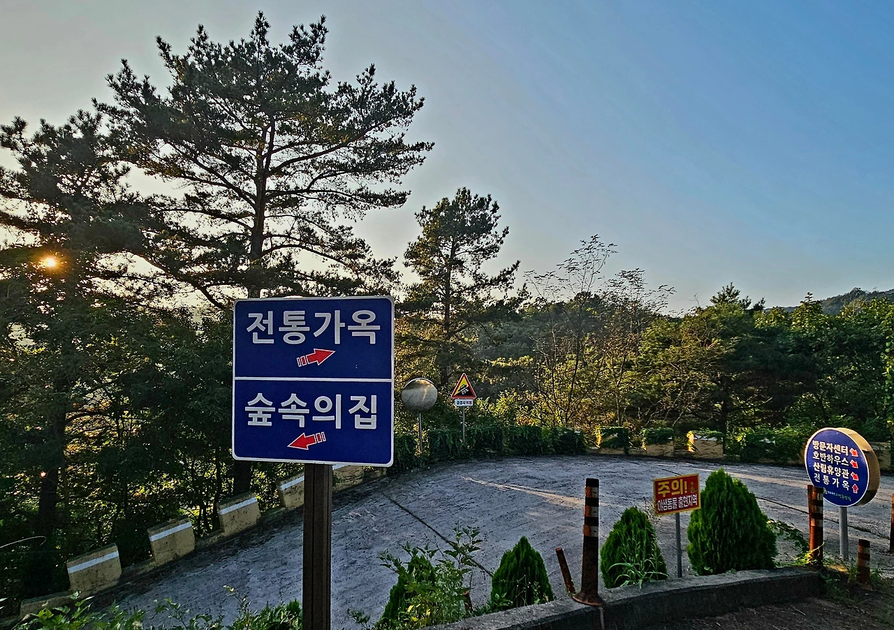 그리고 차를 타고 조금 더 안쪽으로 들어갔다. 도로 가장 끝에는 안동호반휴양림의 색다른 특징인 전통가옥 지구가 있었다. 10인실 2곳과 14인실 1곳으로 구성된 초가집 3동과, 18인실 규모 기와집 1동이 있었다. 주차된 차량이 많은 것으로 보아서 상당히 많은 가족들이 이곳을 찾은 것이 아닐까 라는 생각. 전통가옥 숙소는 여러 가족이 함께 휴가를 즐기기에 안성맞춤으로 보였다. 마지막으로 사진 몇 장을 찍고 다시 숲 속의 집으로 차를 돌렸다. 서서히 해가 지고 있는 모습이었다. 숙소에서 저녁을 준비하는 동안 숲 속의 집에는 어둠이 내려와 버렸다. 그날밤 우리 가족은 가을벌레들의 울음소리를 자장가 삼아서 잠을 청했다. 호수가라서 그런지 정말 아무 소리 들리지 않고 풀벌레 소리만 가득한 밤이었다. 낭만 그 자체였다.