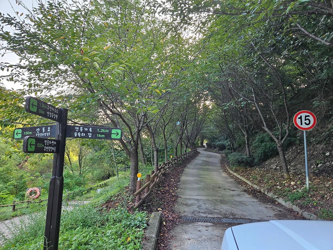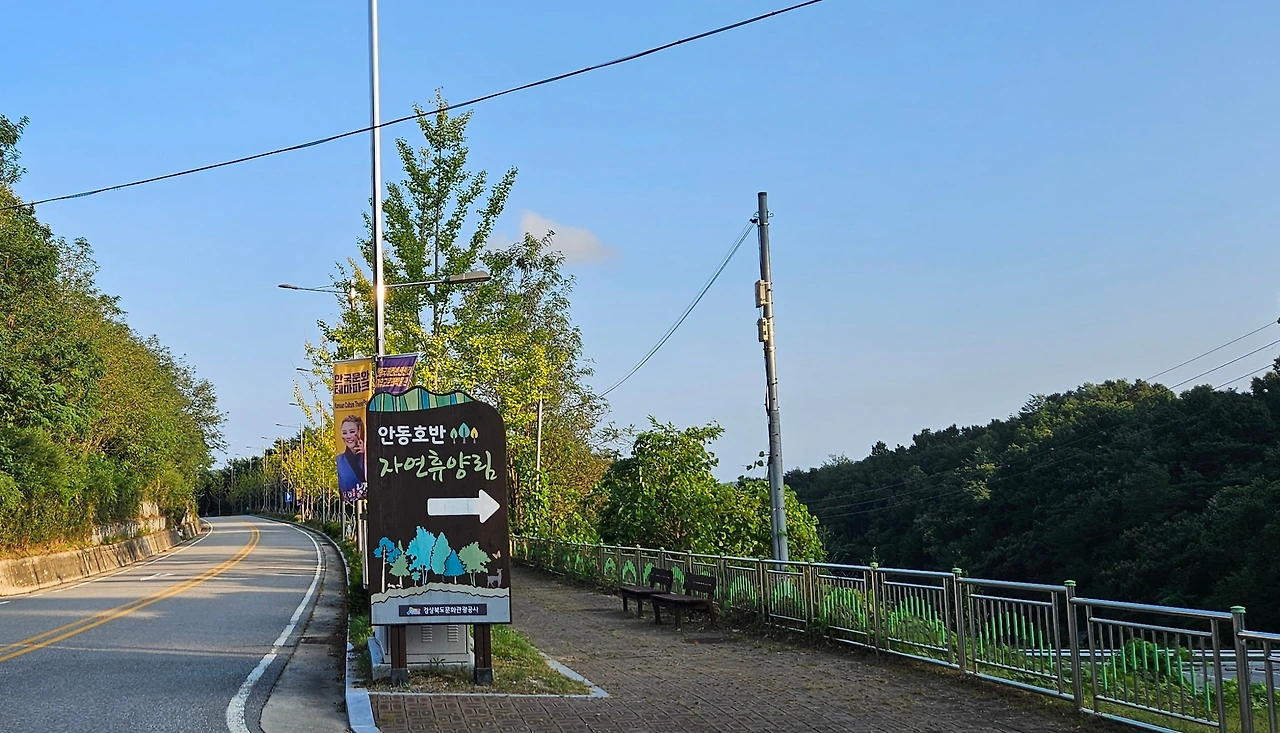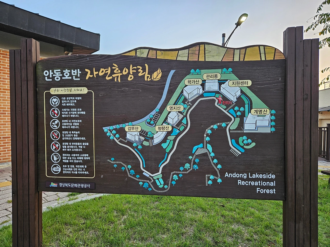 안동호반 자연휴양림은 안동에서 도산서원으로 가는 길목에 자리 잡고 있었다. 안동 시내에서 북쪽으로 약 25분 정도 달리면 안동호 근처에 조용히 자리 잡은 휴양림을 만날 수 있었다. 구불구불 이어지는 차도를 지나서 휴양림 입구에 들어서니 지난해와 마찬가지로 관리자분이 직접 밖에 나와 계셨다. 출구 앞에서 휴양림으로 들어오는 탐방객들에게 직접 하나하나 친절하게 안내해 주는 모습이 꽤나 인상 깊었다.