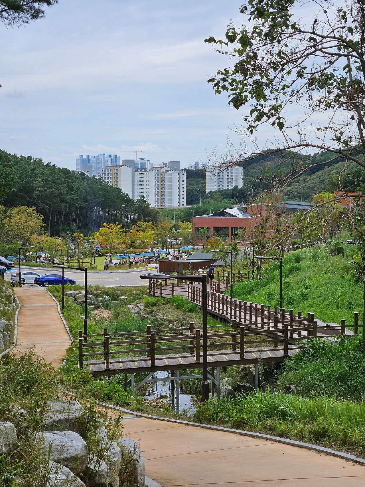 서늘한 바람이 불어오는 10월. 우리 가족은 무봉산 자연 휴양림을 찾았다. 봉황이 두 날개를 펼쳐 춤을 추는 듯하다 해서 이름 붙여진 무봉산은 동탄2신도시 동쪽에 위치해 있었다. 도속도로를 지나서 동탄의 동쪽 끝으로 가니 무봉산 자연휴양림 안내판이 눈에 들어왔다. 서울에서 출발하여 50분 정도. 한 시간도 걸리지 않았다. 입구를 들어서자마자 오른쪽 언덕 위에는 근사하게 지어진 숲 속의 집이 줄지어 있었고, 왼쪽에는 주차장과 함께 넓게 펼쳐진 잔디밭과 피크닉장이 있었다.