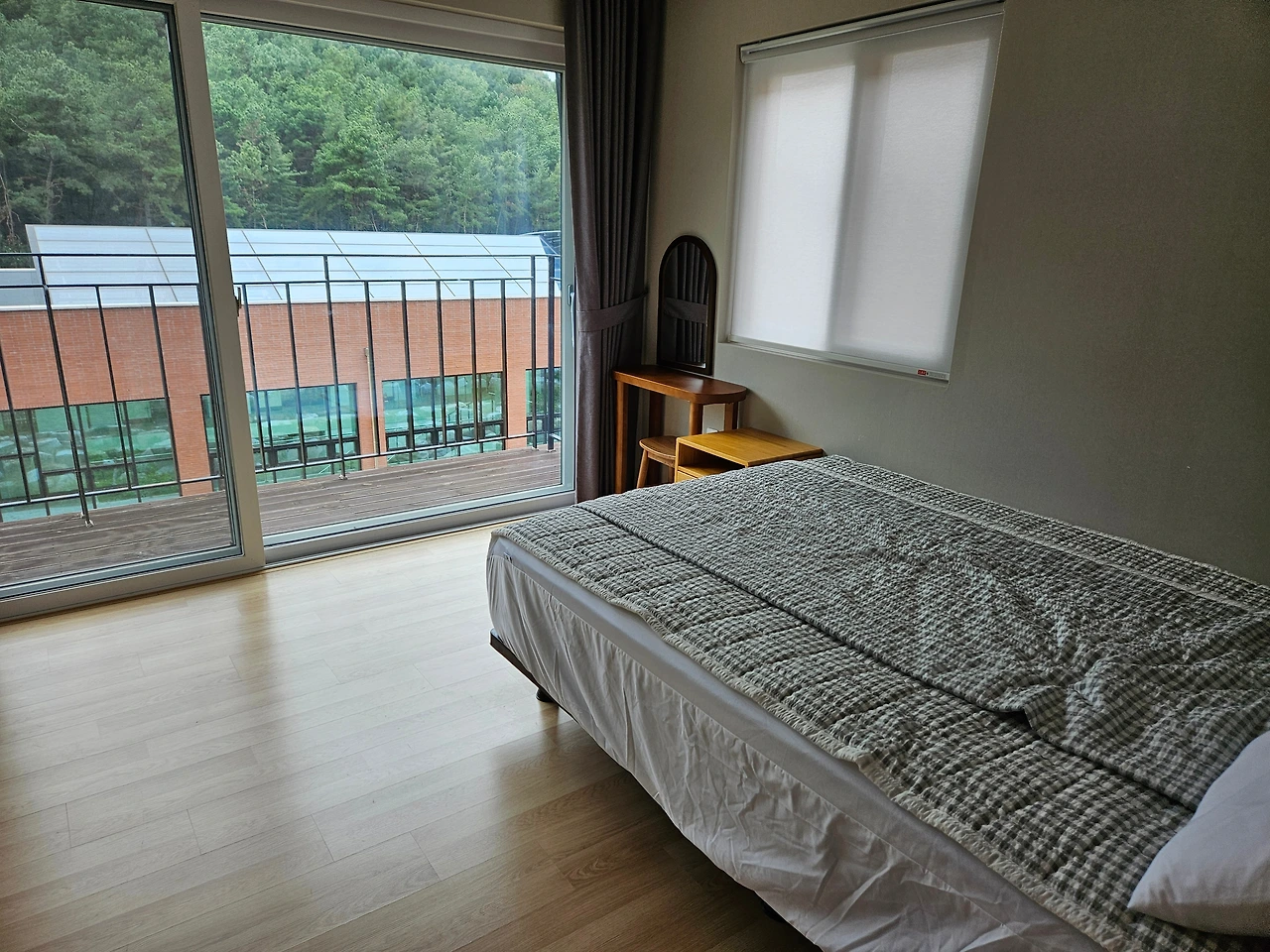 숲 속의 집 5호실여기가 끝이 아니었다. 숲 속의 집은 복층 구조로 되어 있었다. 계단을 살포시 올라갔다. 2층은 숙소에 들어가니 침대가 있었다. 휴양림에 침대가? 그런 곳이 있었나? 내가 다녀본 곳 중에서 침대가 있는 곳은 무봉산 자연휴양림이 처음이었다. 대박이었다. 또 하나의 방에는 침대는 없었지만 넓지막한 온돌방이 있었다. 2층이었기에 휴양림 전체를 둘러볼 수 있었는 근사한 방이었다.