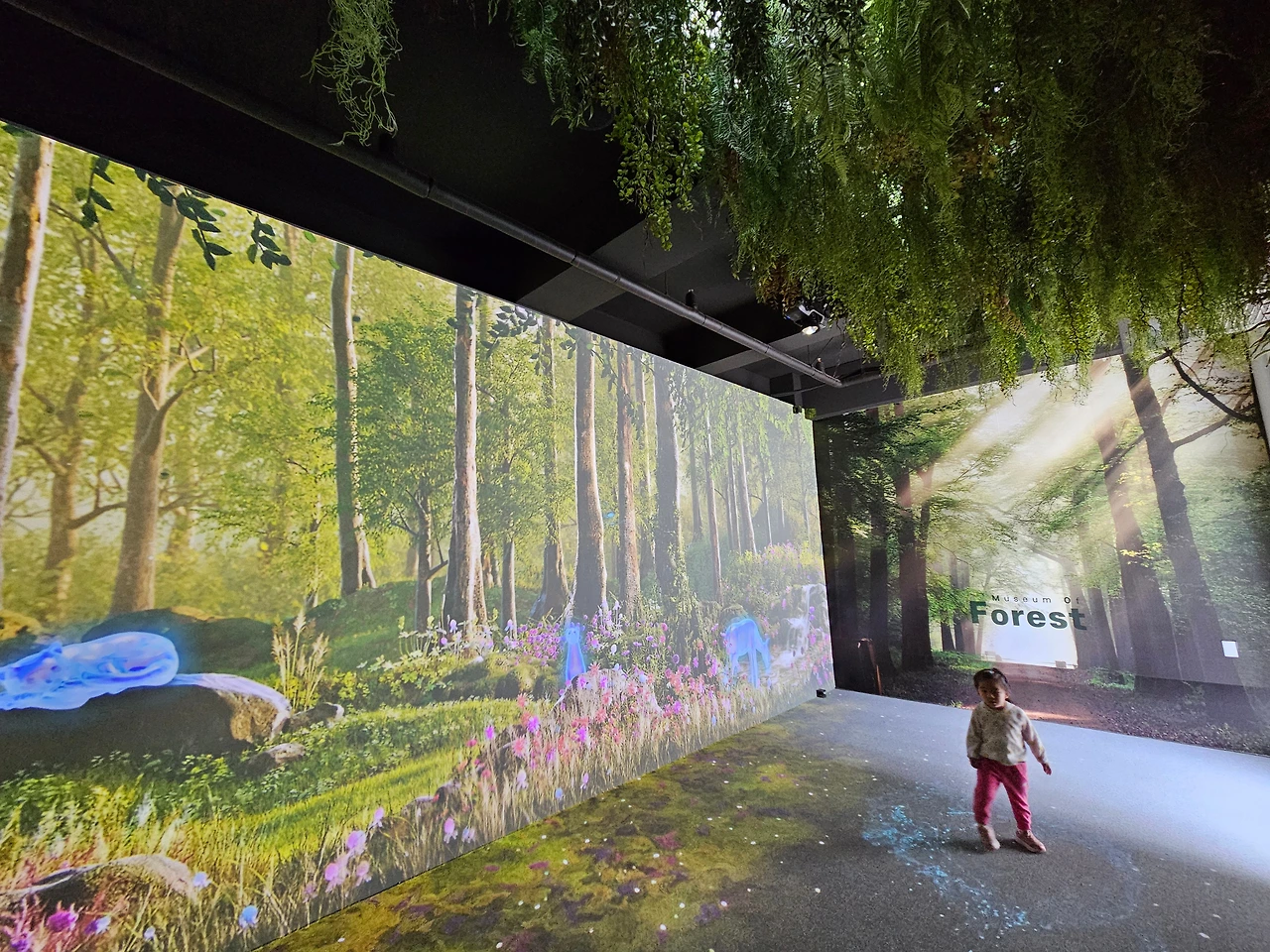 다시 발걸음을 옮겨서 입구 쪽에 있는 산림자원 교육체험관으로 향했다. 안으로 들어서는 순간 또 한 번 감탄사가 나왔다. 단순히 전시공간으로 생각했는데, 숲을 콘셉트 화하여 만든 오감형 체험 공간이 나타났다. 제주도 '빛의 벙커'를 들어설 때의 느낌이랄까? 빛과 자연을 콘셉트로 만든 특별한 공간들이 내 시선을 끌었다. 아이들과 함께 하기에 전혀 부족함이 없었다. 내가 다녀본 숲체험 시설 중에서 가장 세련되고 인상적인 곳이었다.