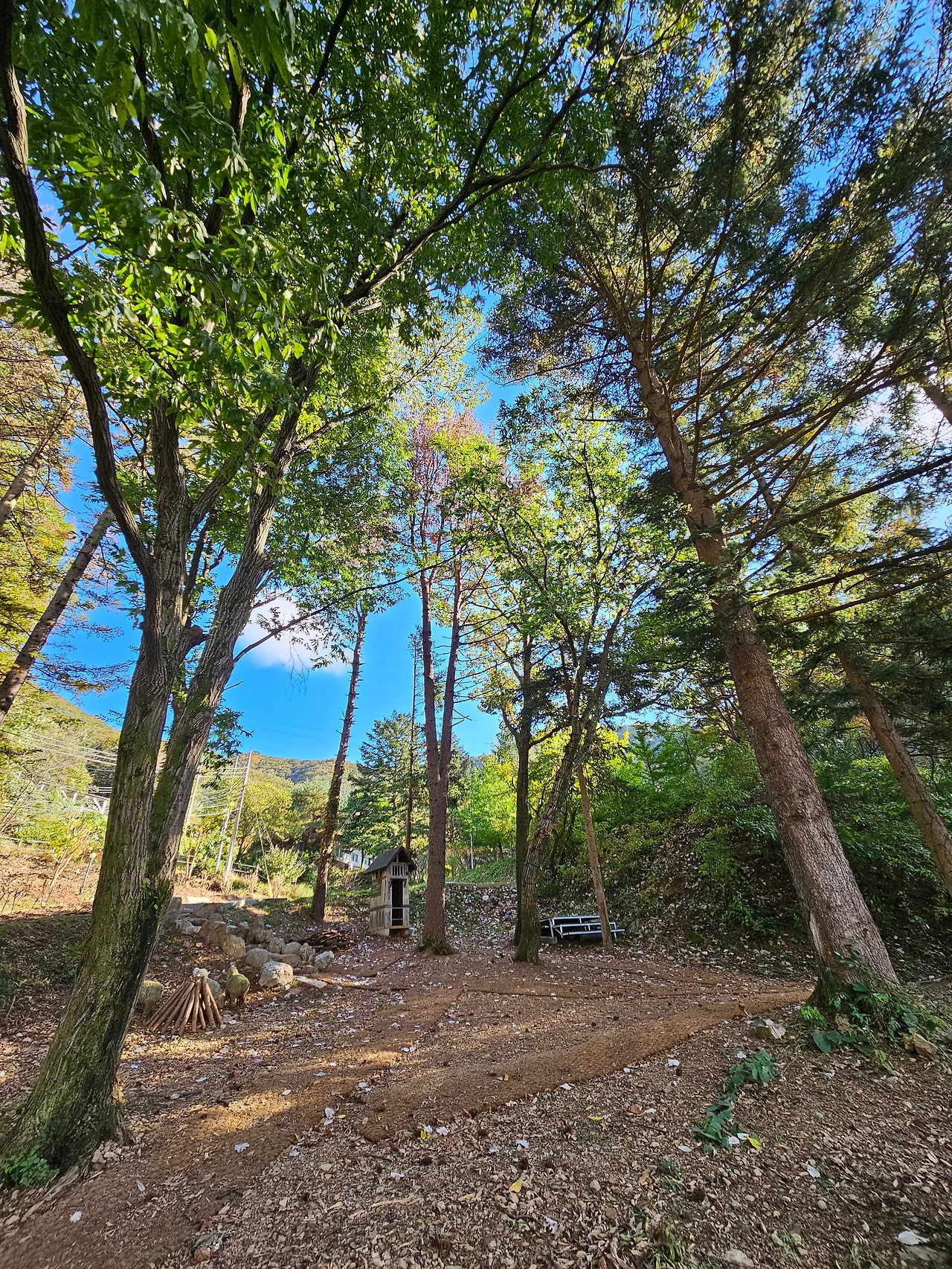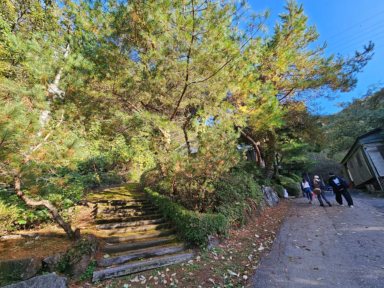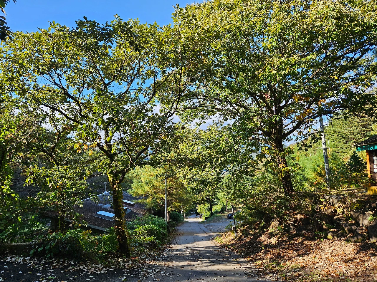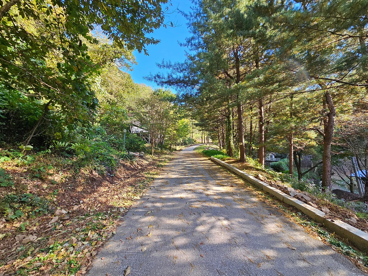 잠시 숨을 돌리고 이제 휴양림 위쪽으로 발길을 돌렸다. 다른 휴양림과는 다르게 순박하다고 할까? 아직 정리가 덜 된 조용한 시골길을 걷는 느낌이었다. 개장한 지 벌써 20여년이 지났으니 깔끔하게 정돈된 것은 않았지만 자연 그대로였기에 더욱 정감이 갔다. 신선한 소나무 내음에 취해서 산책로를 걸었다. 조금 더 올라가니 산림휴양관들이 보였다. 휴양관 A,B가 나타났다.