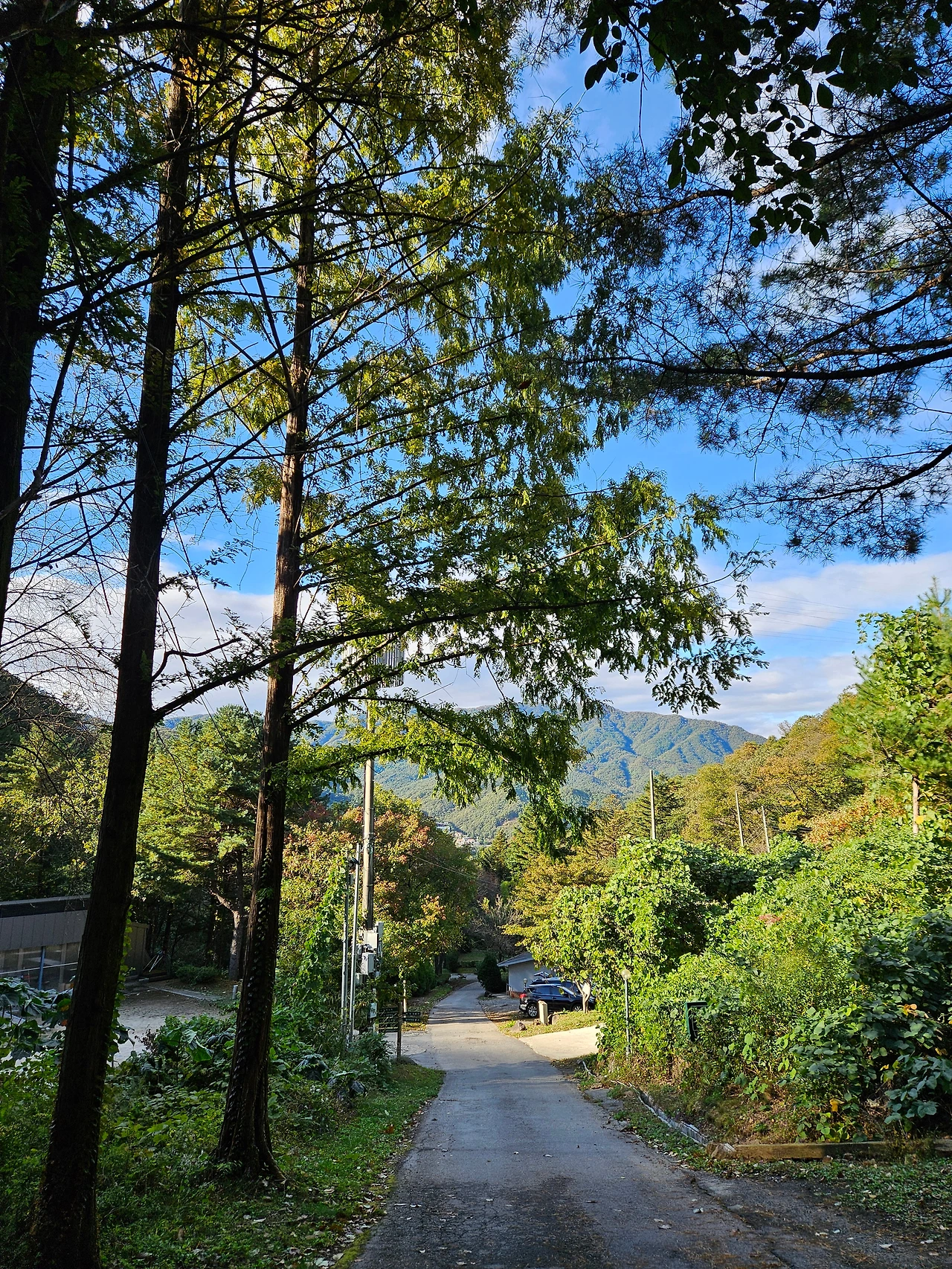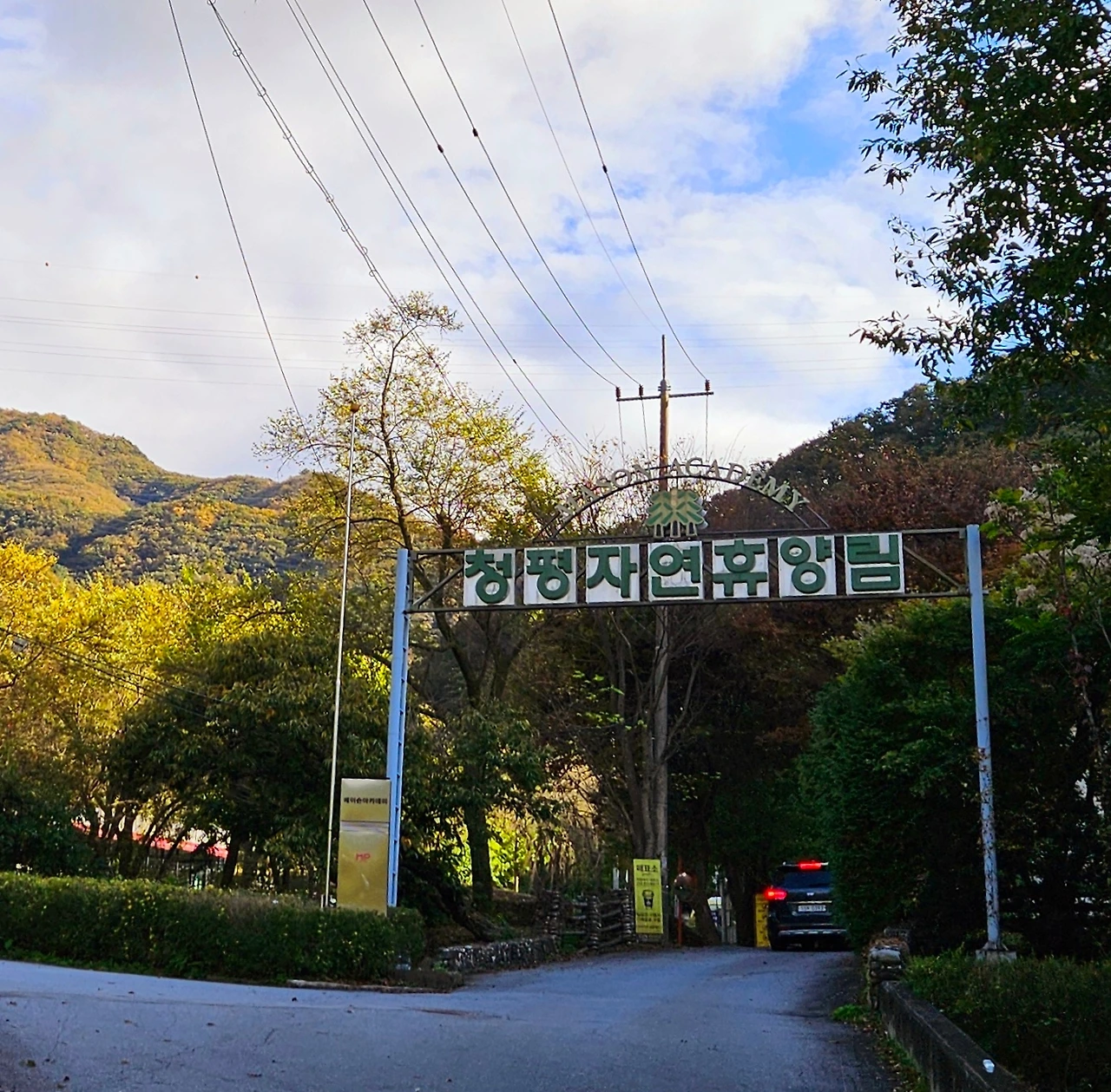 북한강가를 달려서 청평댐 근처에 도착하니 산들이 조금씩 울긋불긋 옷을 갈아입고 있었다. 여기저기 완연한 가을이 온 듯 했다. 신청평대교를 지나서 약 3분 정도가 지났을까? 잠시 후 네비게이션이 청평 자연휴양림 입구에 도착했다는 안내 음성을 보냈다.