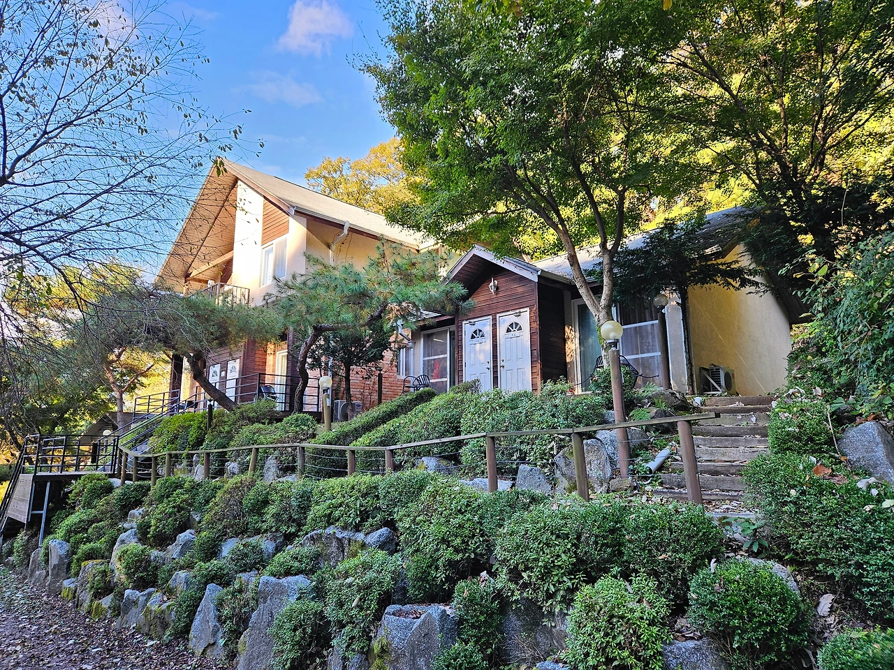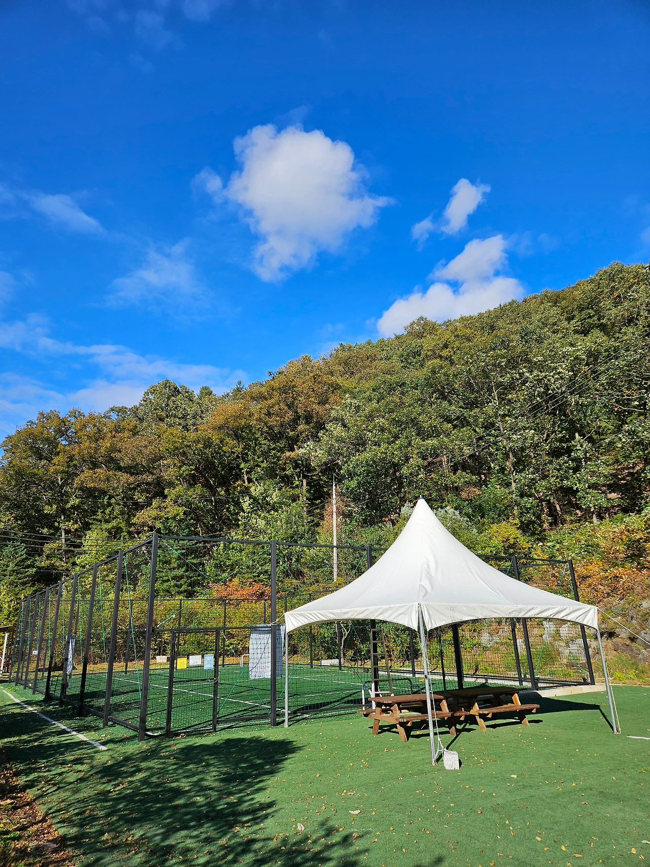 두 개의 휴양관들은 대부분 단체 숙소로 보였다. 10~16명 정도가 들어가는 꽤 큰 규모였다. 3~4가족이 함께 사용하기에 괜찮은 규모였다. 일찍 체크인을 한 가족 몇 팀이 올라와서 짐을 정리하고 있는 모습이 보였다. 숙소 바로 앞에 근사한 바비큐 장이 있어서 오손도손 이야기를 나누며 저녁을 즐기기에 완벽한 숙소로 느껴졌다. 숙소 뒤에는 인조잔디 구장이 있어서 운동을 즐기기도 가능해보였다.
