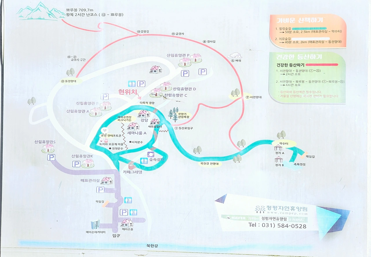 청평 자연휴양림의 첫 인상은 '소박, 그 자체'였다. 처음 보여지는 표지판도 대학 시절 MT에서 만났던 북한강의 느낌이랄까? 뭔가 꾸미지 않은 과거로의 여행같은 기분이었다.