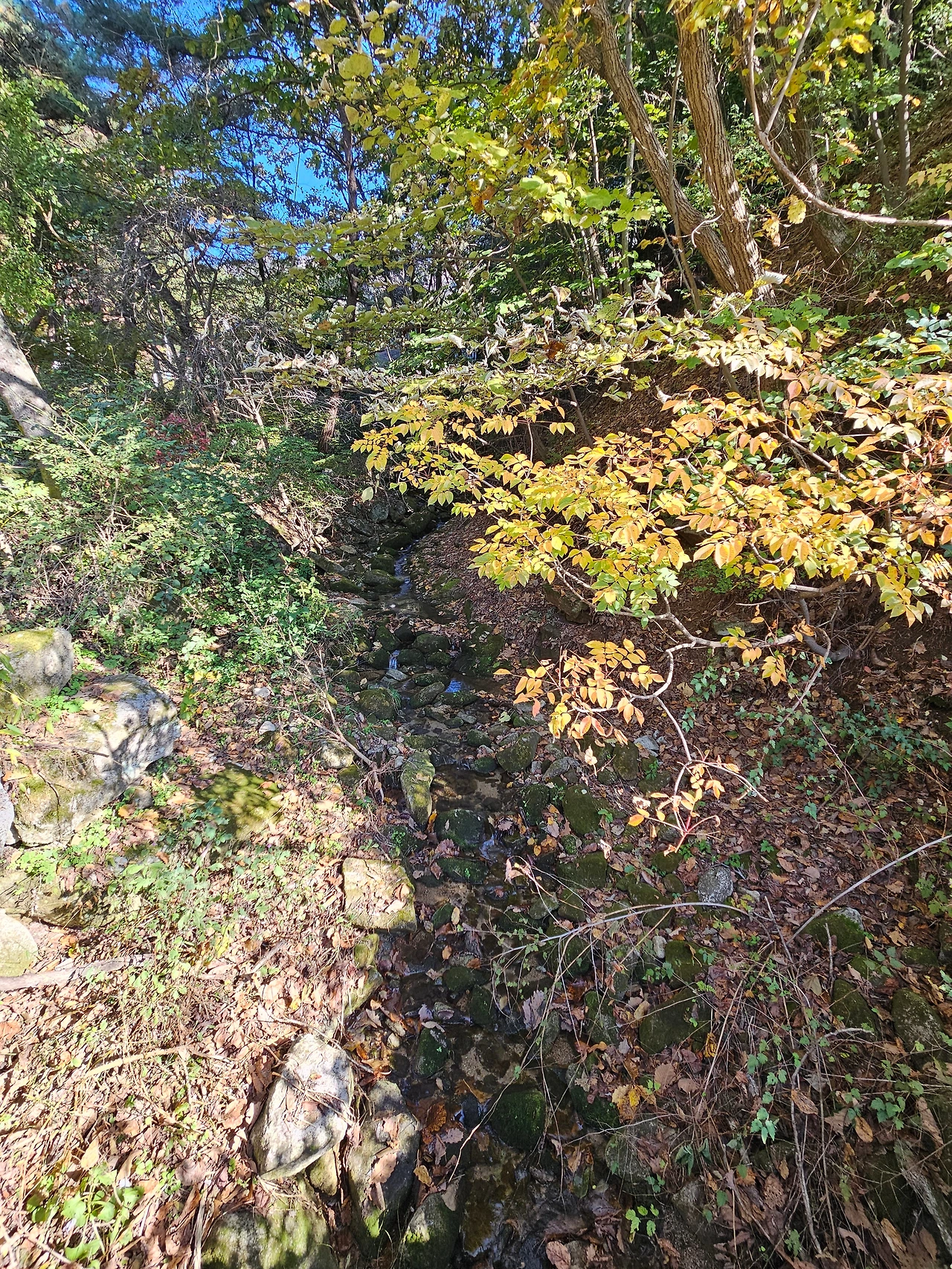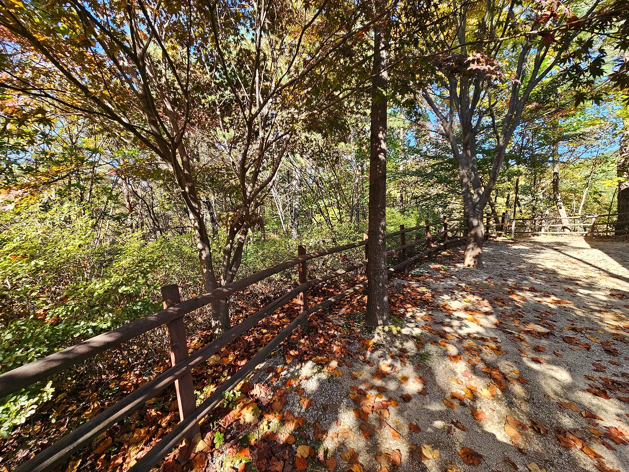 운현정 사진을 몇 장 찍고 다시 휴양림 안쪽길로 산책을 했다. 가을의 중심에서 상쾌하게 느껴지는 낙엽 내음이 향긋하게 느껴졌다. 산책로 바로 옆으로 이어지는 작은 개울에서는 맑은 물이 졸졸졸 흐르고 있었다. 그 모습을 보고 있노라니 일상의 걱정이 모두 사라지고 마냥 행복했다. 이런 가을을 가족과 함께 즐길 수 있다는 것만으로 너무나 만족스러웠다. 우리 가족은 울긋불긋 가을 물결 가득한 운악산의 명풍 정원을 걸었다.