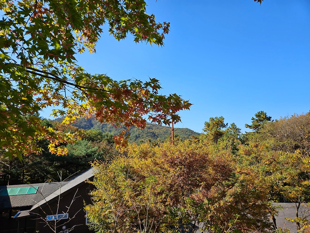 이제 베란다쪽으로 가서 살짝 문을 열어보았다. 창 밖으로 가을이 도착해 있었다. 형형색색으로 물든 운악의 가을 풍경이 그대로 문 앞에 다가와 있었다. 1년을 기다린 계절의 모습이었다. 바람이 살포시 불면서 낙엽들이 그 위로 떨어지니 낭만과 운치가 가득했다. 가을 숲을 그대로 즐길 수 있는, 내가 원하는 그런 장소였다. 이곳에 의자를 펴고 밤하늘을 즐기면서 맥주를 즐기면 완벽한 힐링의 시간이 아닐까 생각했다.