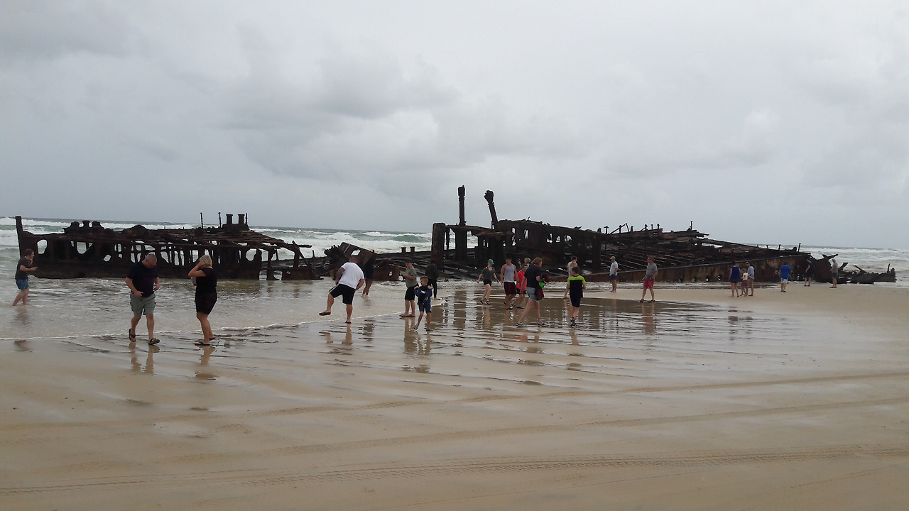 우리 일행을 태운 차량은 다시 동쪽 해안가로 이동했다. 프레이저 섬의 뷰 포인트인 난파선(Shipwreck)과 특별한 개울(Eli Creek) 체험을 위해서였다. 약 30~40분 울퉁불퉁한 모래 도로를 빠져나와서, 다시 북쪽으로 향했다. 조금씩 맑은 하늘이 나타나고 있었다. 모래 해변에서는 몇몇이 낚시하는 모습이 창밖으로 보였다. 가이드 말에 의하면 잡히는 고기들이 상상을 초월한다고 한다. 40~50cm 크기의 물고기도 나오고, 가끔 상어까지 해변에 출현한다고 한다. 왼편에는 호주의 들개인 ' 딩고' 몇 마리가 지나가는 모습도 보였다. 들개들이 가끔씩 사람들도 공격한다고 하니 조심해야 한다고 했다. 얼마나 달렸을까.. 거대한 난파선 잔해가 보이기 시작했다. 그냥 단순히 난파선 같아 보였지만, 이 동네의 핫스팟이라고 한다. 또 하나 장점은 여기 먼 바다에서는 고래가 있어서 가끔씩 난파선 넘어로 보인다고도 했다. 나도 열심히 고개늘 돌려 고래를 찾아보았지만, 아쉽게도 그날 내 눈에는 고래가 보이지 않았다.
