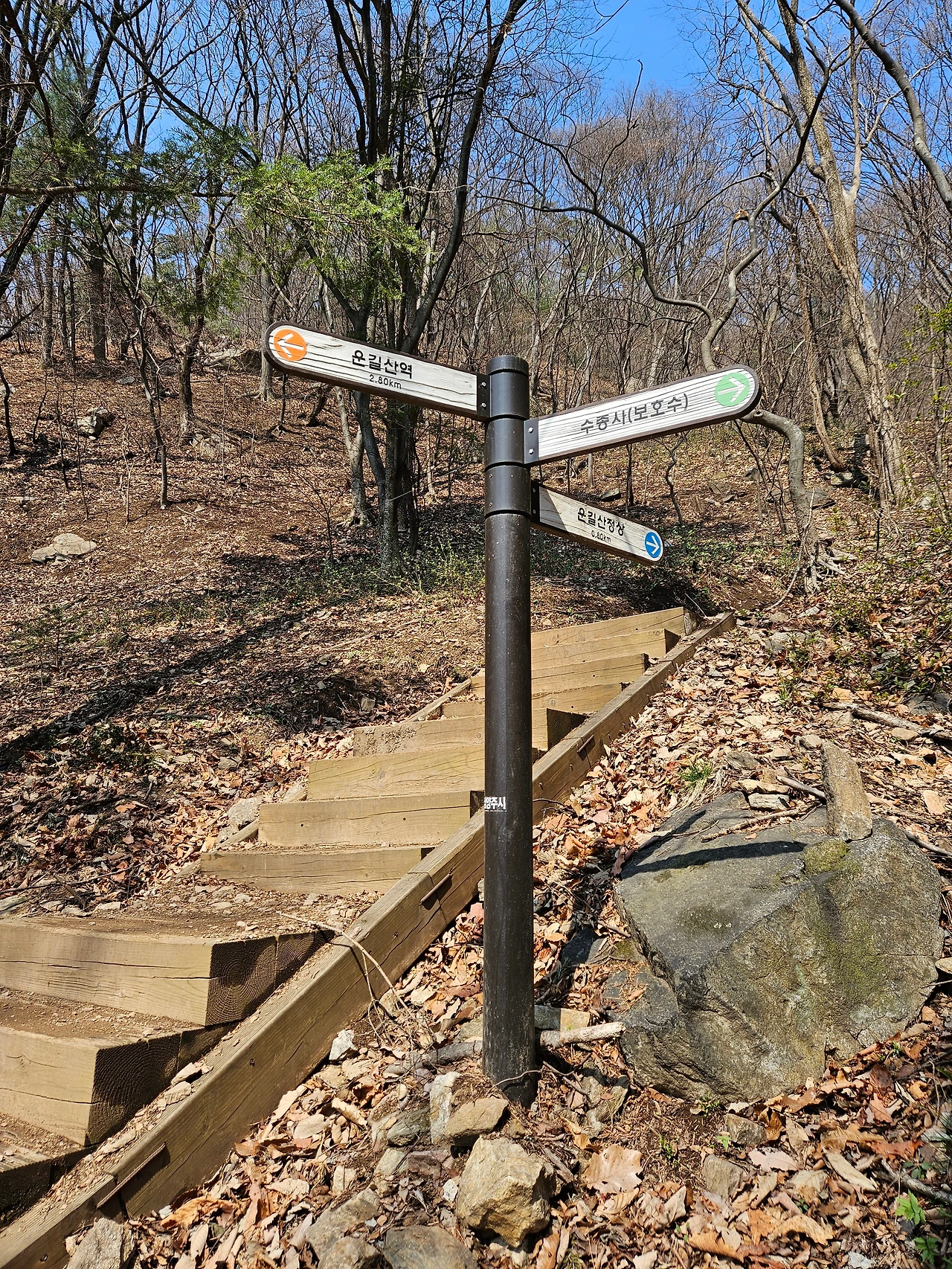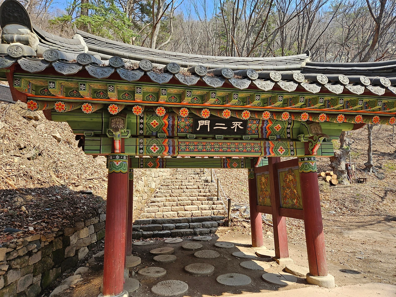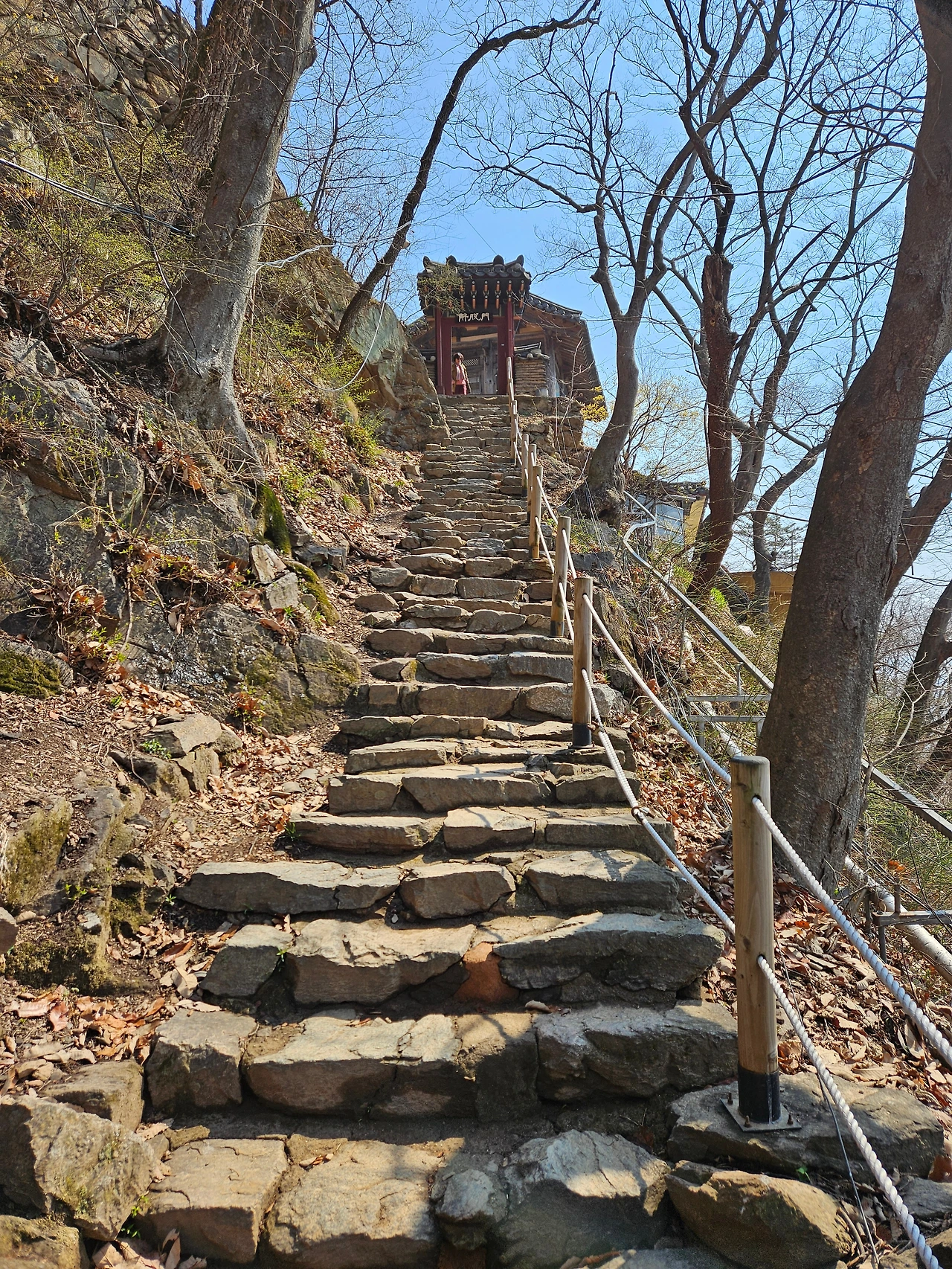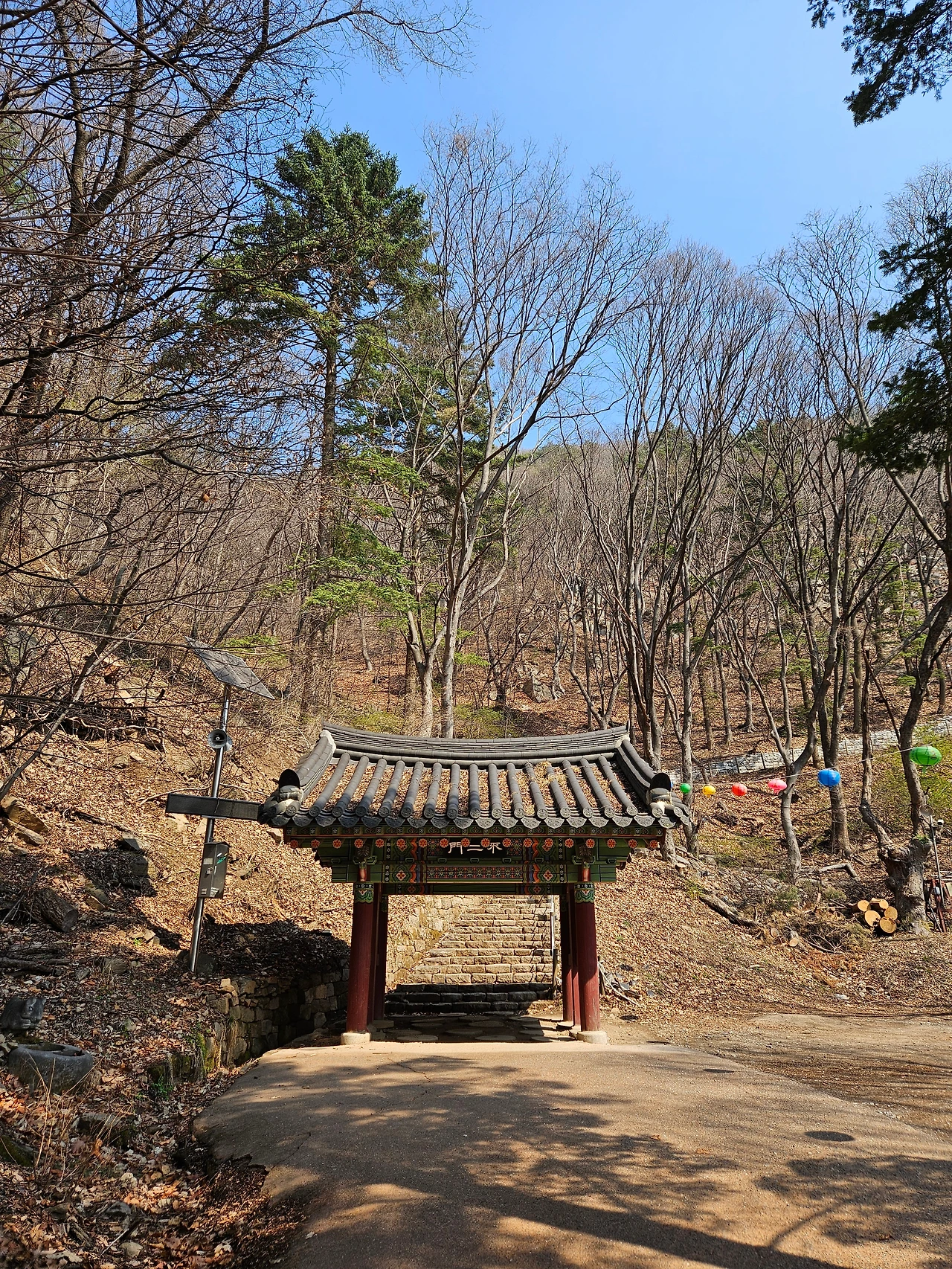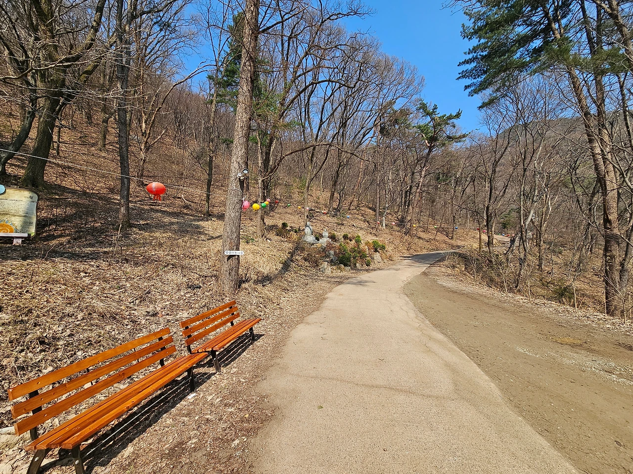 평탄하게 이어지는 산책로를 걸었다. 그리 어렵지는 않았다. 그러나 조금 더 걸어가니 절로 향하는 작은 문이 나왔다. 여기부터는 오르막길이 이어졌다. 왼쪽으로 가면 운길산 정상으로 가는 길이었고, 오른쪽으로 가면 수종사로 향하는 길. 나는 오른쪽으로 발걸음을 돌렸다.