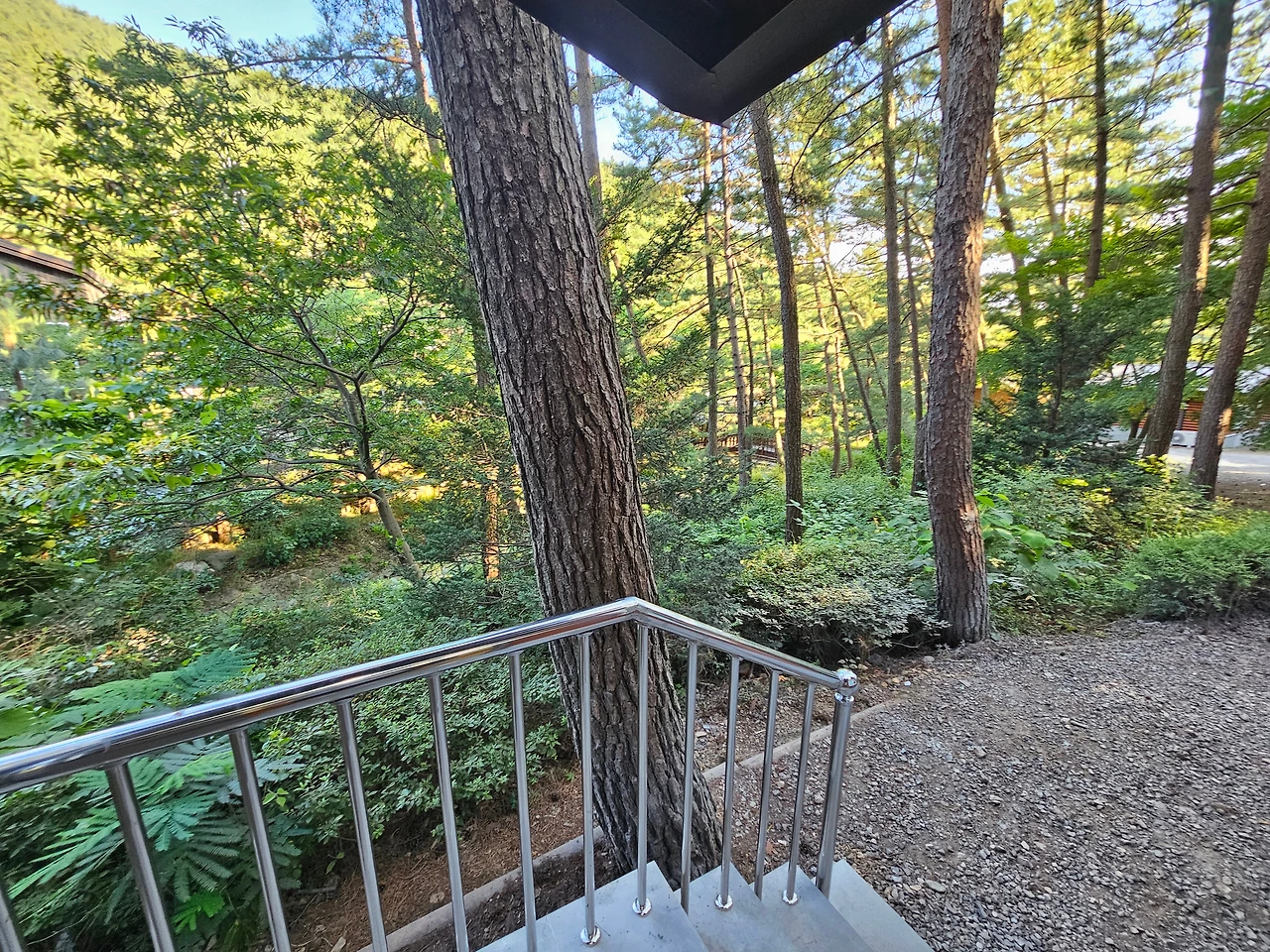 다만 입구 쪽에 이불장이 크게 있는데, 그 공간이 창문과 출입문 사이에 있어서 전체적으로 공간이 작아 보이는 것은 피할 수가 없었다. 창도 통창이 아니기에 개방감이 크지 않았고 뒤로 이어지는 창문도 경사 때문에막 막힌 느낌이었다. 입실 정원이 4명이지만 모두가 눕기에 그리 넓지 않은 구조라서 조금은 아쉬웠다. 다만 문을 열고 나오면 멋진 해송을 오감으로 즐길 수 있다는 것. 그것이 희리산 자연휴양림의 가장 매력적이었다.