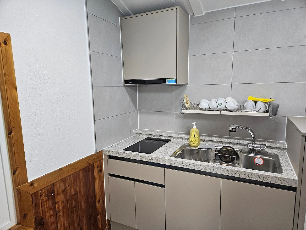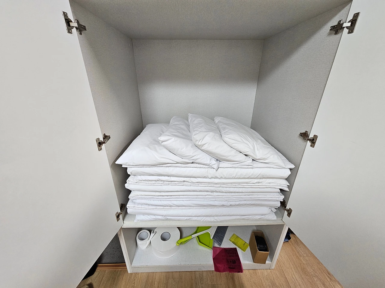 짐을 정리하면서 숙소 문을 열고 안으로 들어가 보았다. 문을 여니 서너 명 누울 수 있는 방과 화장실, 주방이 있었다. 리모델링이 끝난 지 얼마 되지 않아서 상당히 깔끔했다. 작은 도심의 신축 원룸 느낌이랄까?