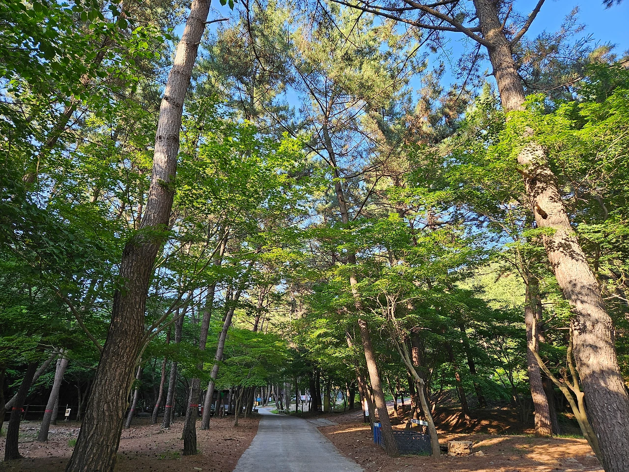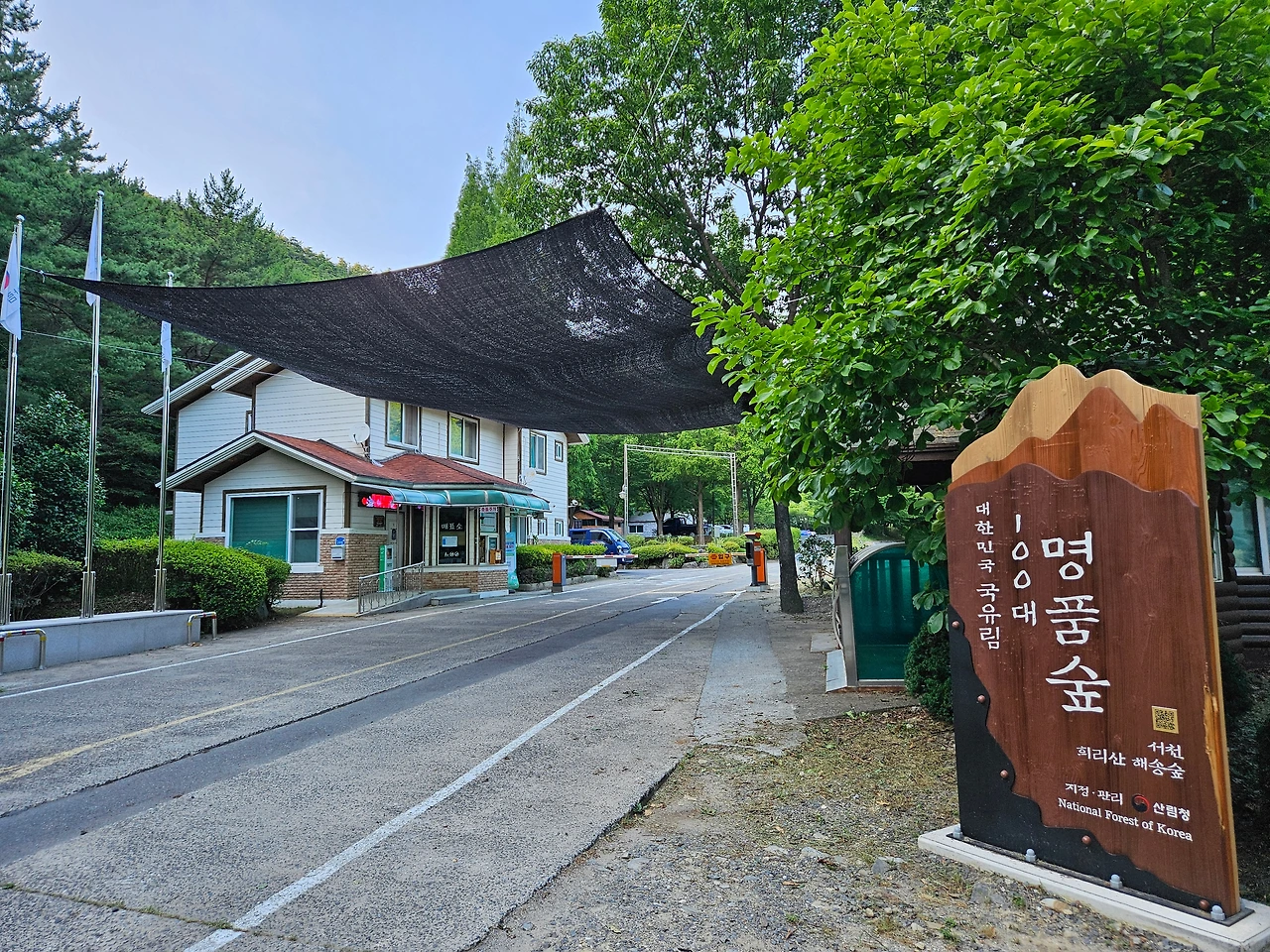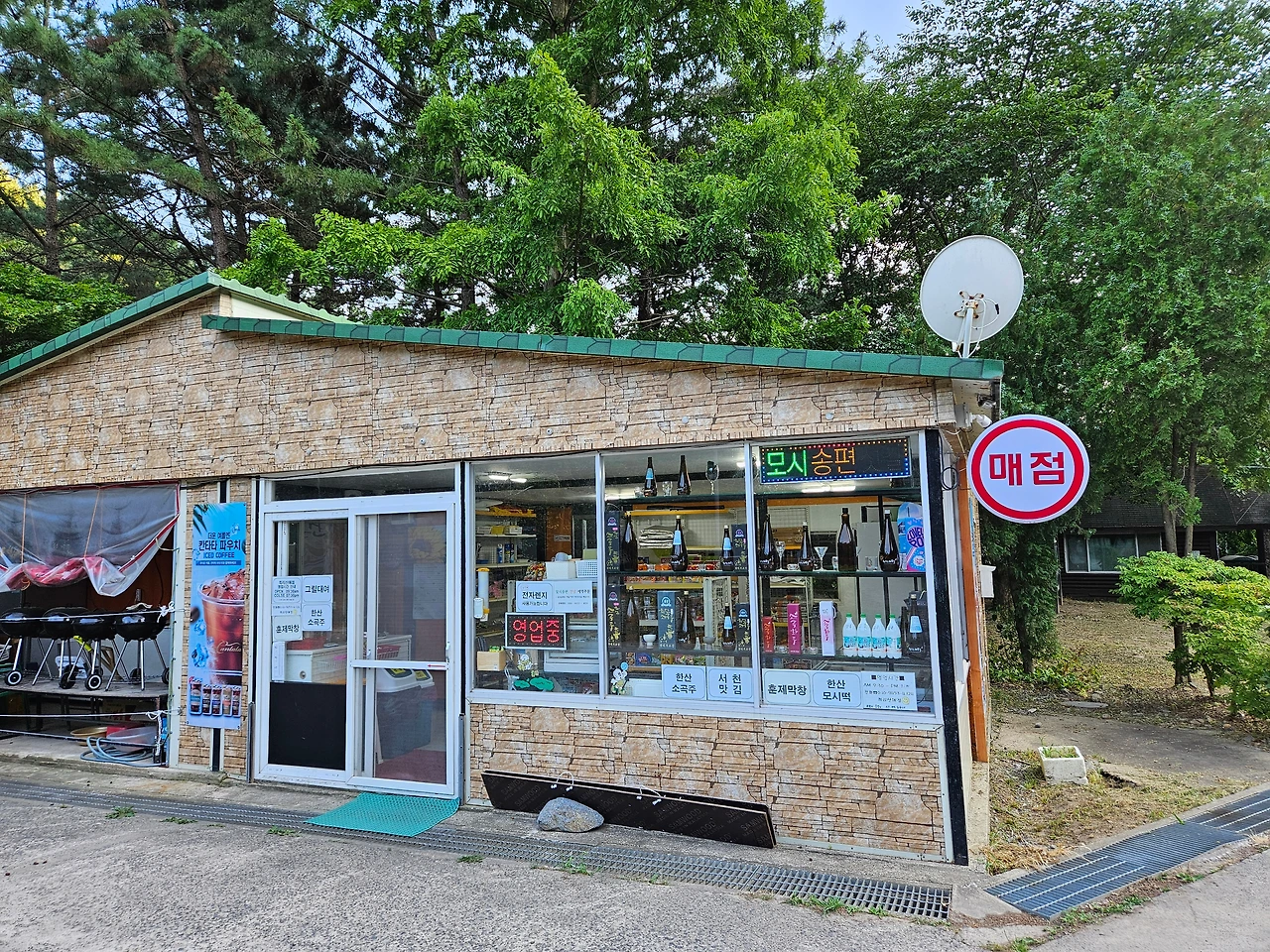 이제 발걸음을 돌려서 입구 쪽으로 다시 향했다. 오는 길에 작은 매점을 봐서 뭐가 있나 궁금했다. 길게 이어지는 소나무길을 따라서 걸어가니 입구에 위치한 희리산 매점이 나왔다. 시원한 음료부터 라면, 과자 등이 있었고 바비큐 시설도 대여를 한다고 했다. 음식만 가지고 와서 이곳에서 장비를 대여해서 고기를 구워 먹어도 괜찮을 듯. 다만 오후 7시 30분에 문을 닫아서 미리미리 준비해야 한다는 것. 읍내까지는 거리가 꽤 되기에 이곳 매점이 상당히 유용하다는 생각이 들었다.